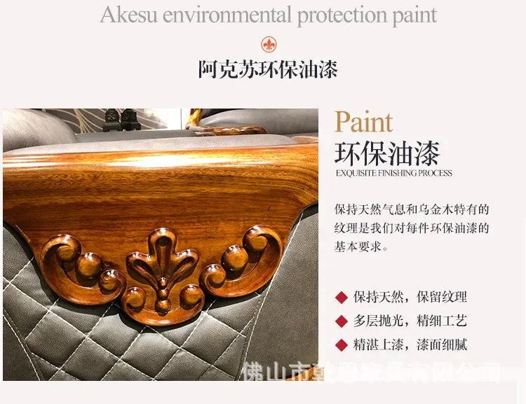 Leather Sofa Combination Solid Wood Sofa Gold Wood European Large and Small Villa Living Room Luxury Style High-end Black Fabric