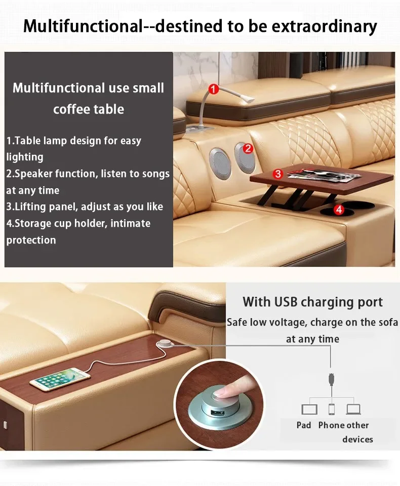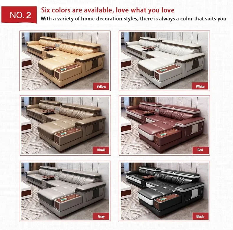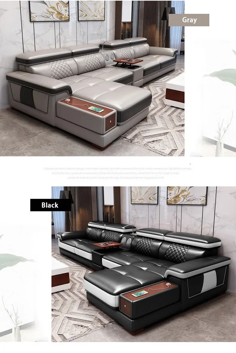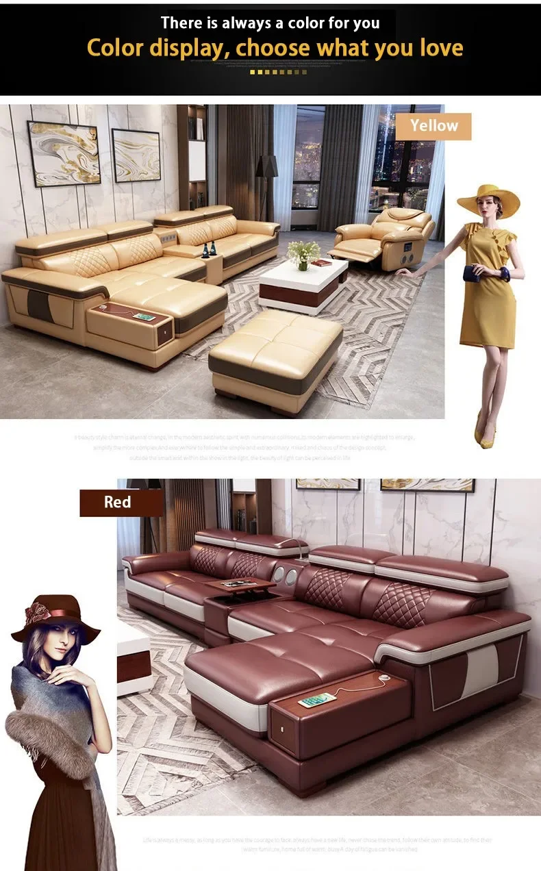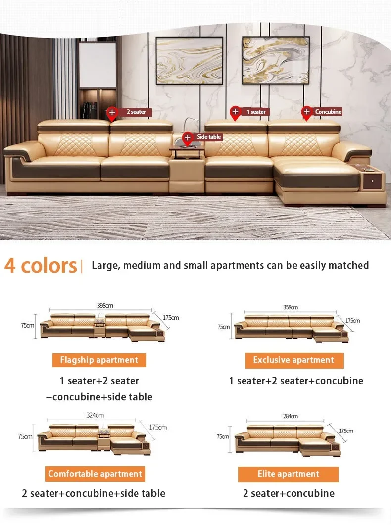 Leather Sofa Head Layer Leather Living Room Sofa Modern Simple Multi-functional Combination Of Large Small Intelligent Furniture