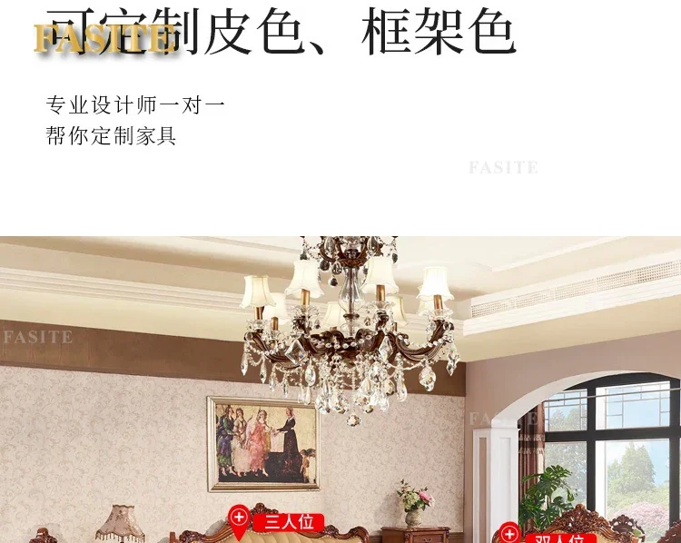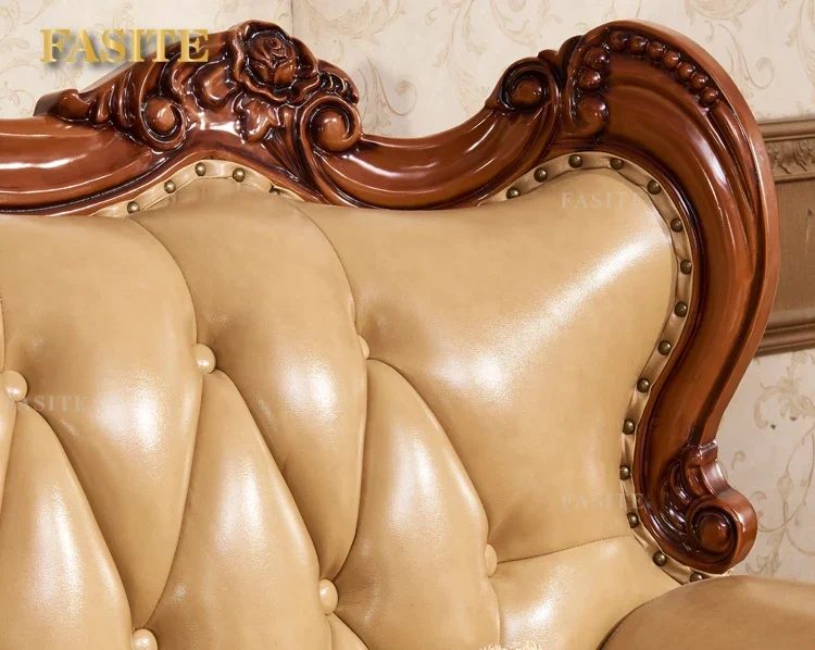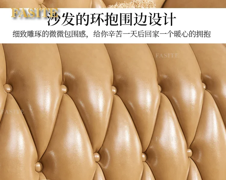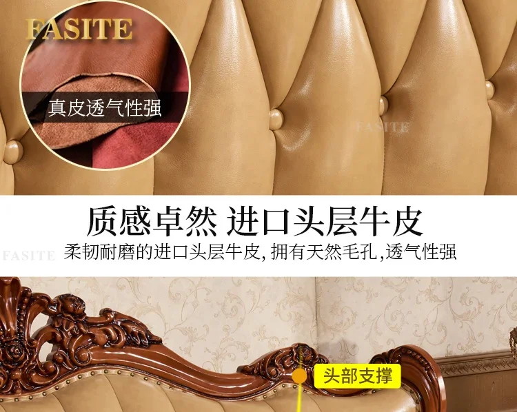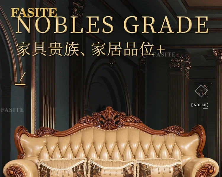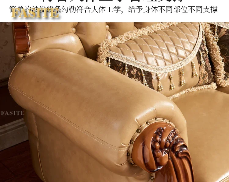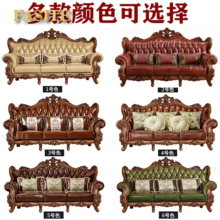 Leather sofa solid wood suite villa first floor leather living room luxury retro sofa