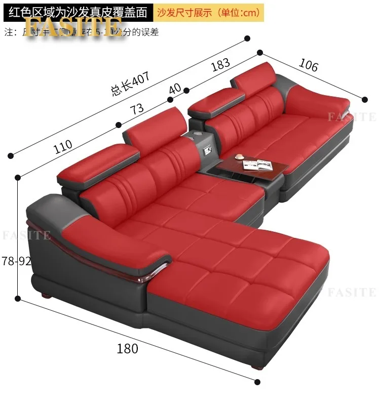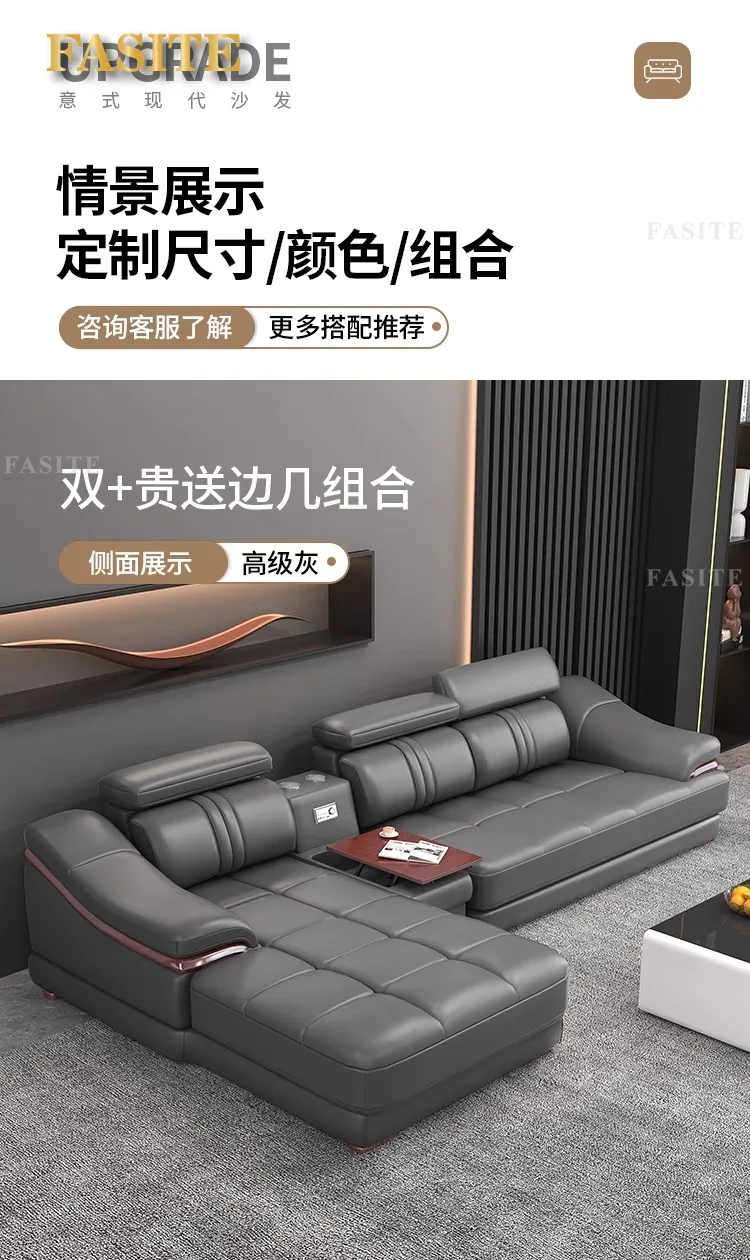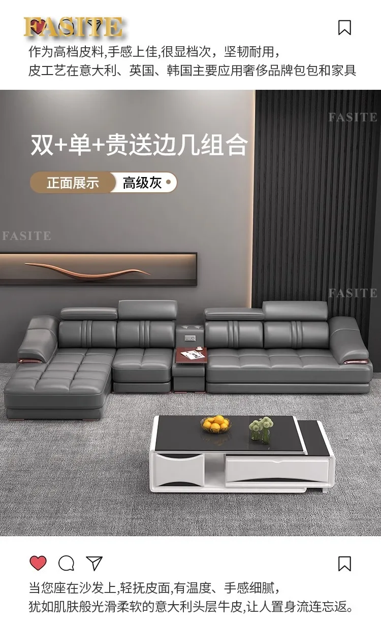 Leather top layer cowhide living room corner combination large and small apartment leather sofa combination