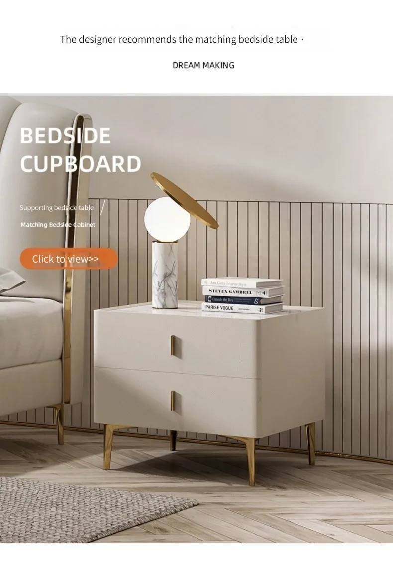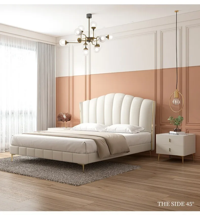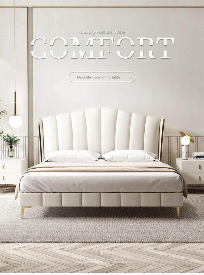 Light Luxury Bedroom Frames Safe Materials Support Customization Big Storage Space Comfortable Wooden Double Bed