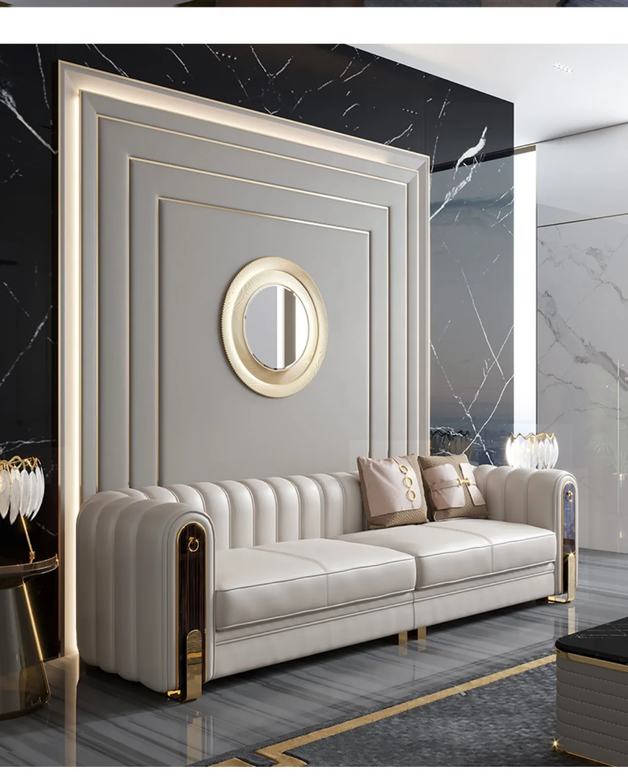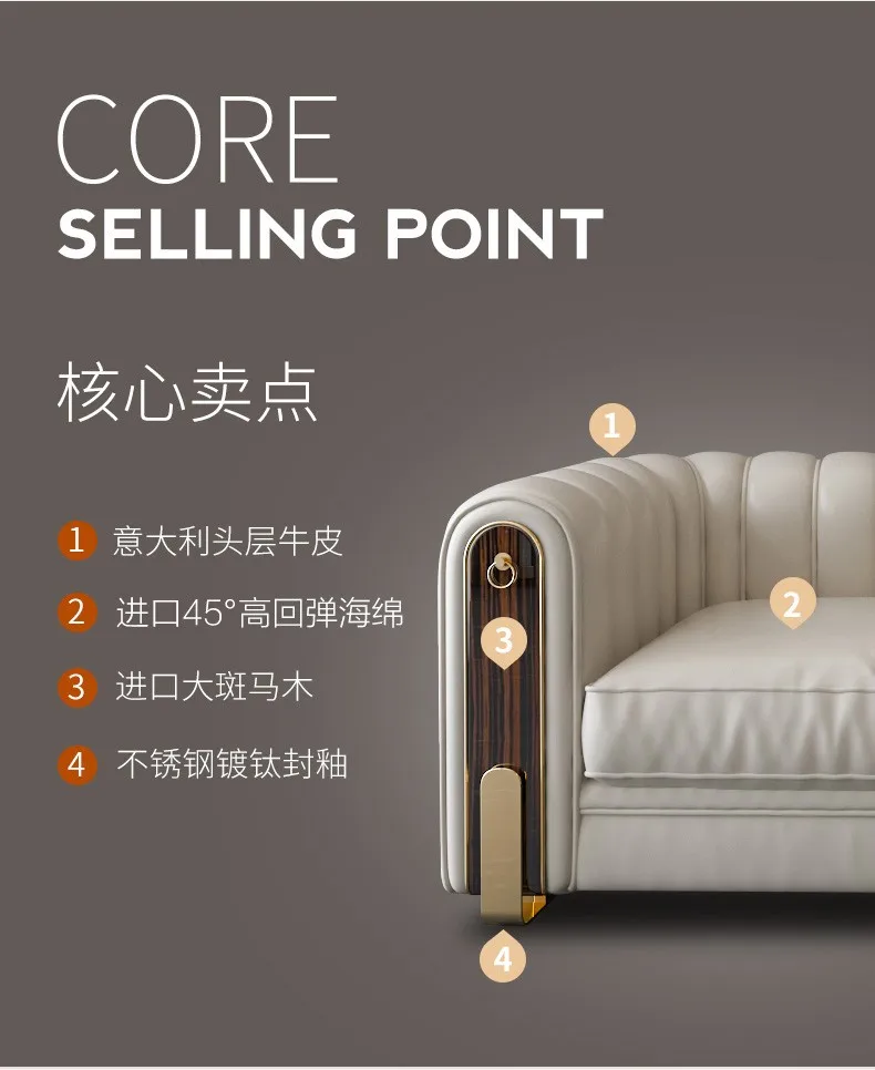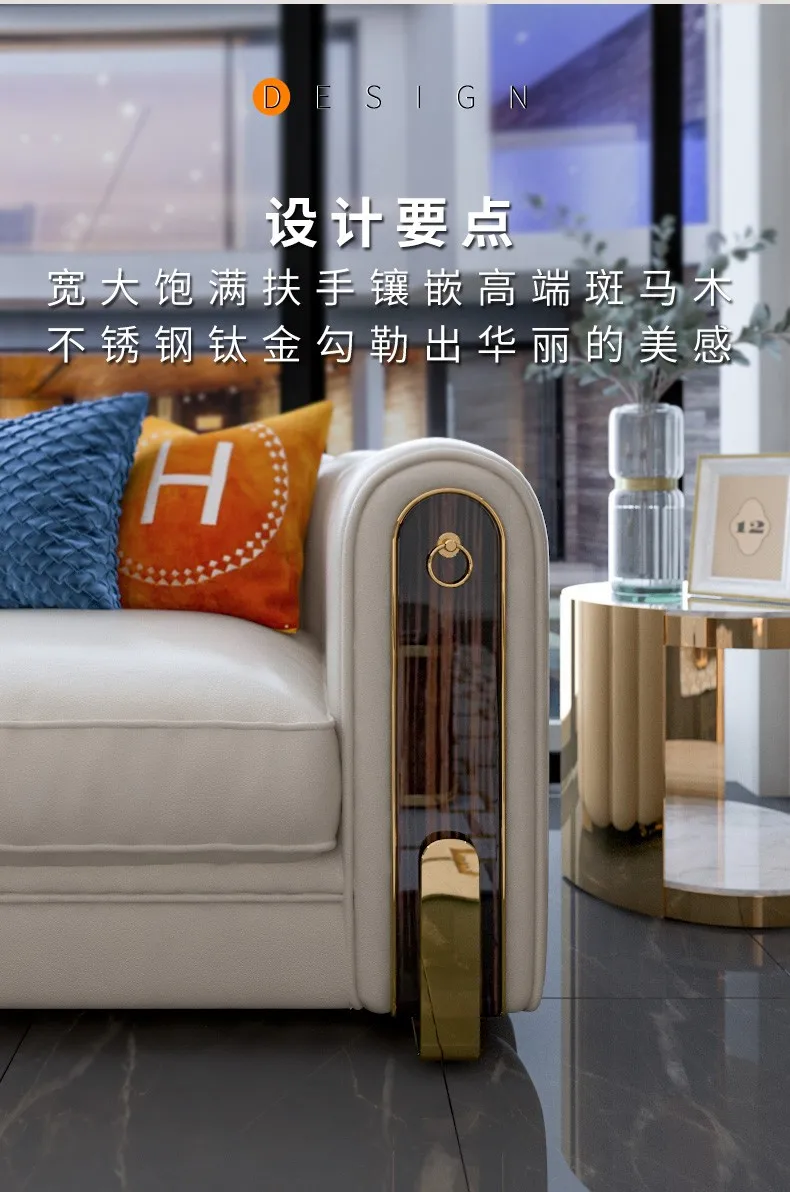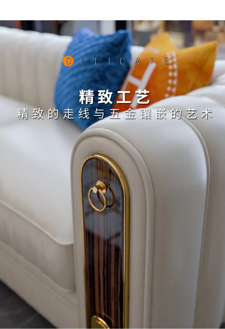 Light luxury leather sofa, modern, simple, high-end, stylish combination, small living room leather sofa