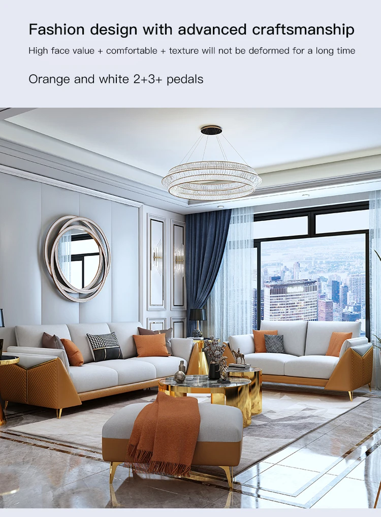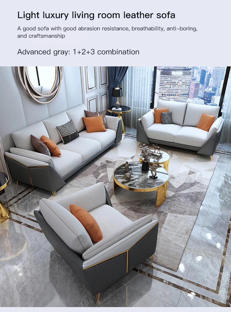 Light Luxury Sponge Sofa For Living Room Home Furniture Sets Luxury Simplicity French Designer Sectional Leather Sofa Armchair