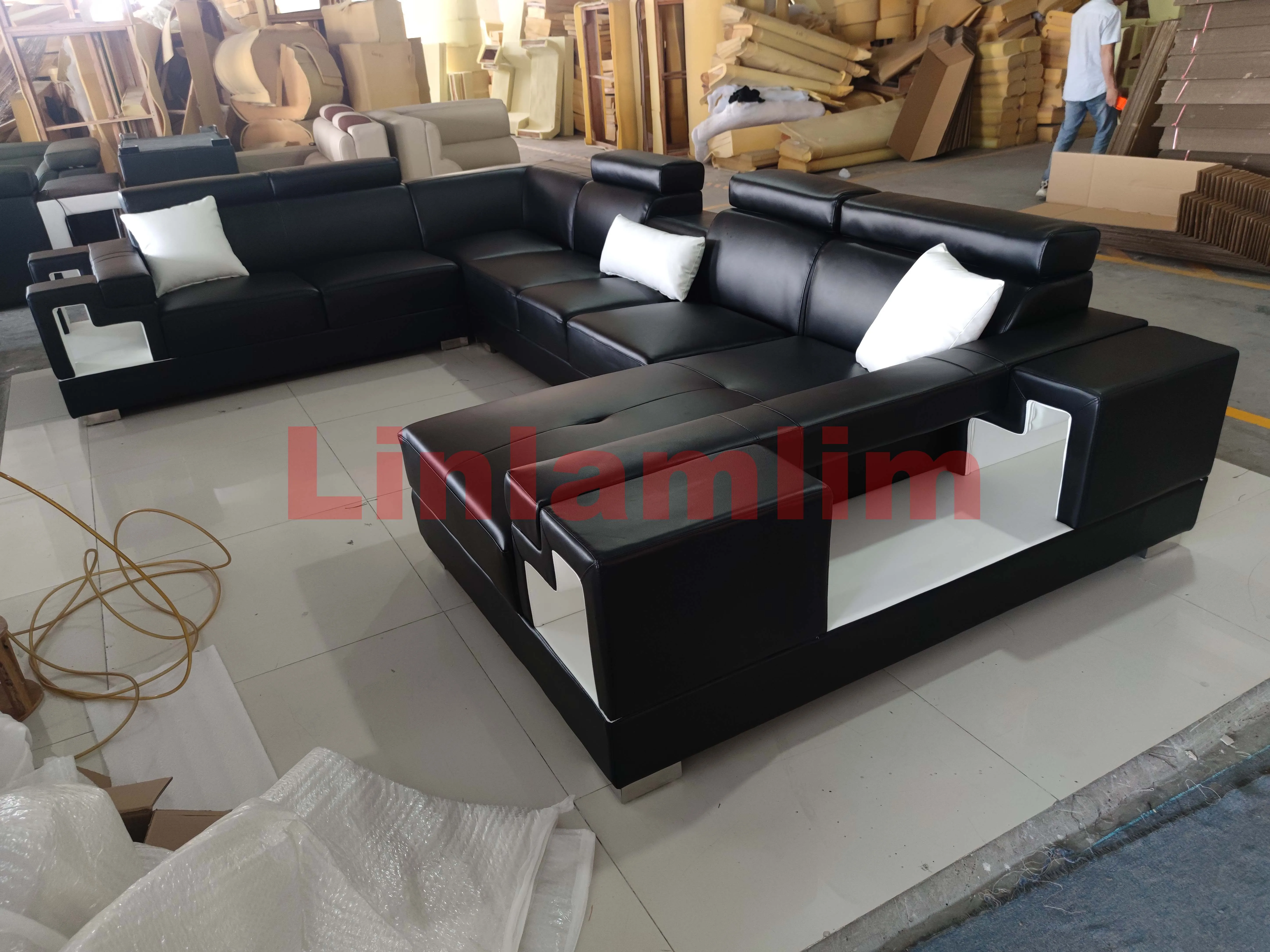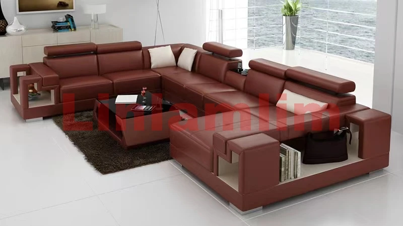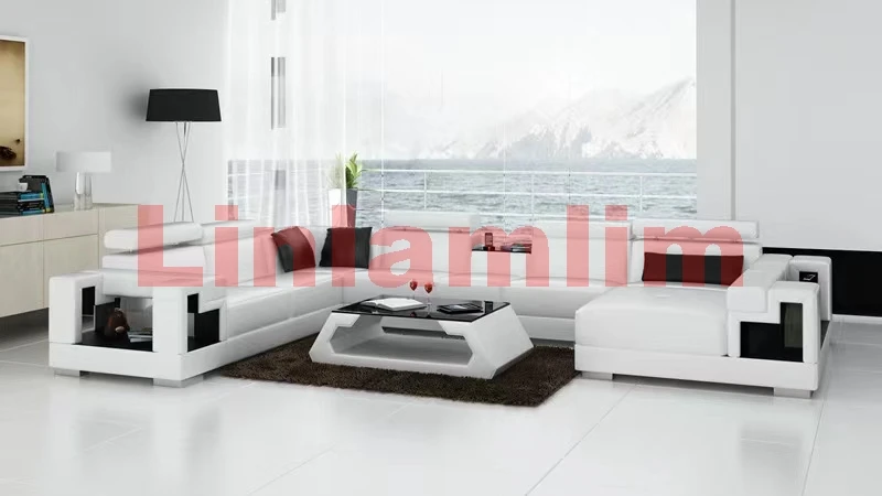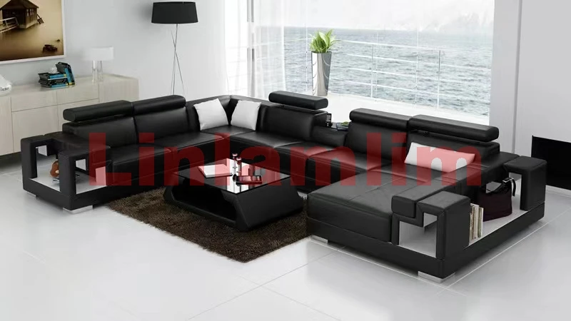 Linlamlim Italian Genuine Leather Sectional Sofa Futuristic Furniture U Shape Couch Living Room Big Sofas Set with Coffee Table