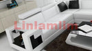 Linlamlim Italian Genuine Leather Sectional Sofa | Futuristic Furniture U Shape Couch Living Room Big Sofas Set with Coffee Table