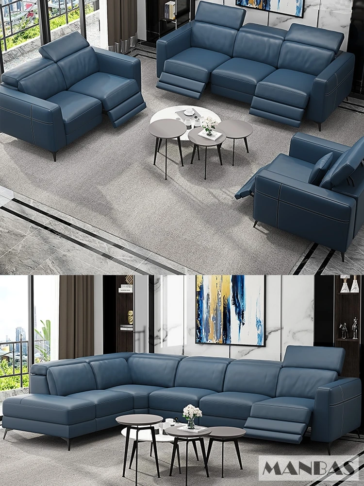 Linlamlim Relaxing Italian Genuine Leather Recliner Sofa Set with Electric Recliner Chairs Living Room Couch Sectional Sofa Sets