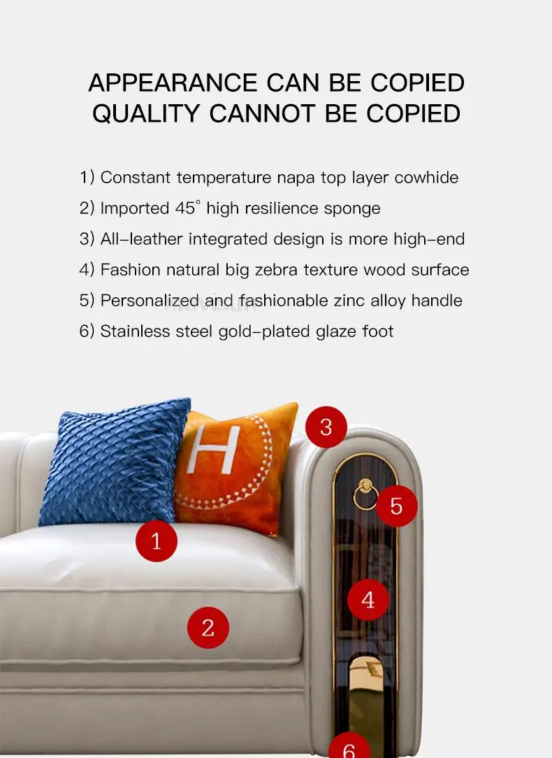 a.The sofa made of Nappa cowhide is soft, breathable and easy to clean.