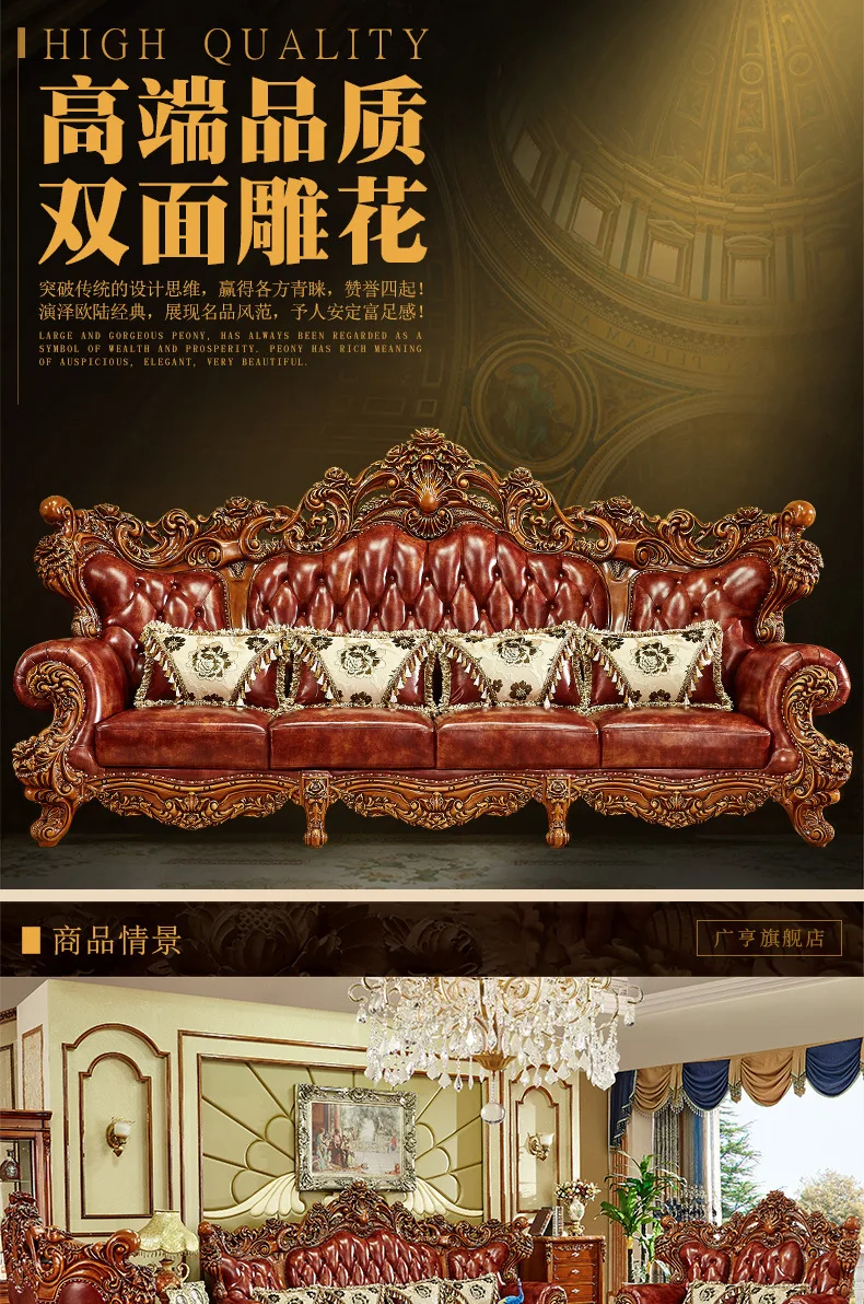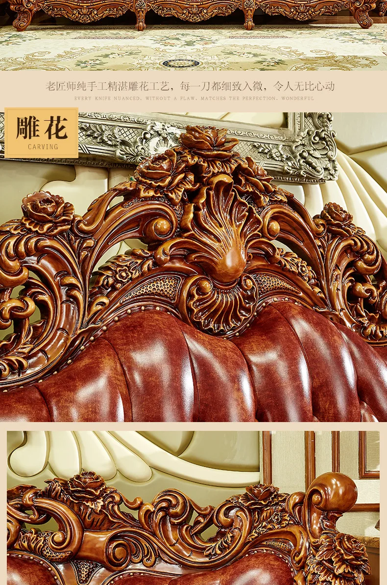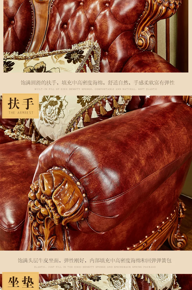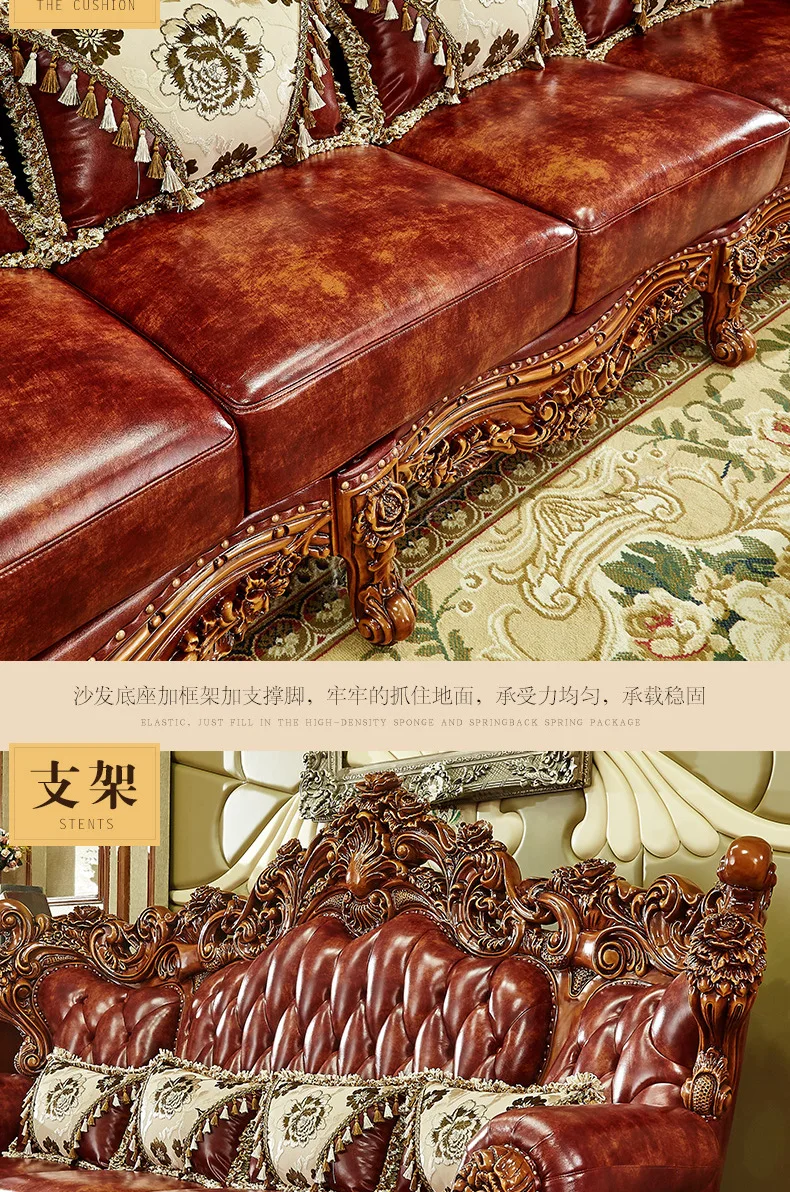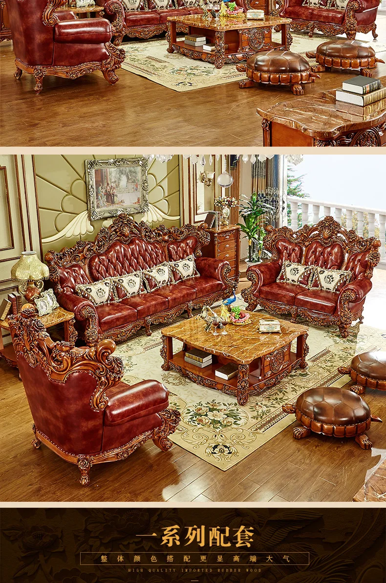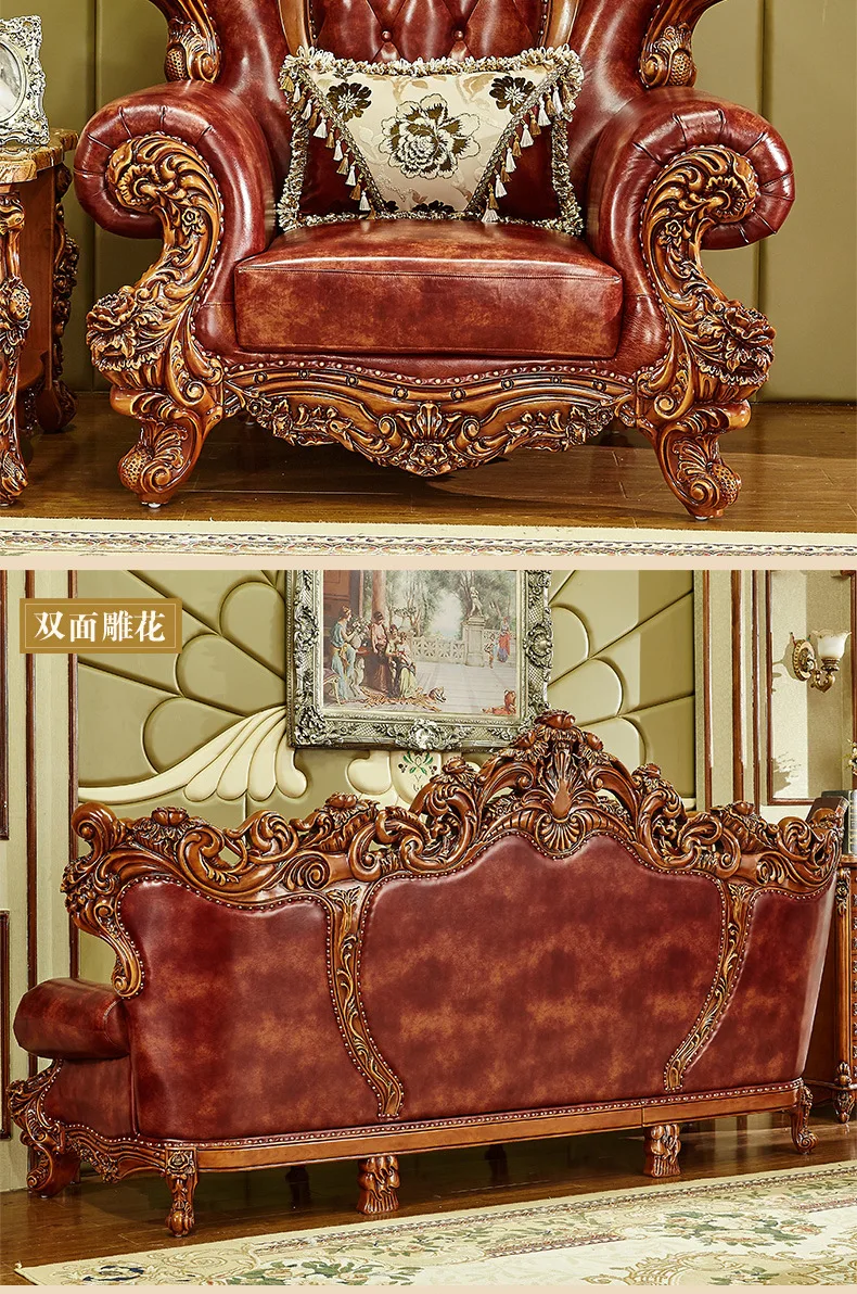 Living room furniture European leather full solid wood sofa combination living room high-end luxury villa American furniture set