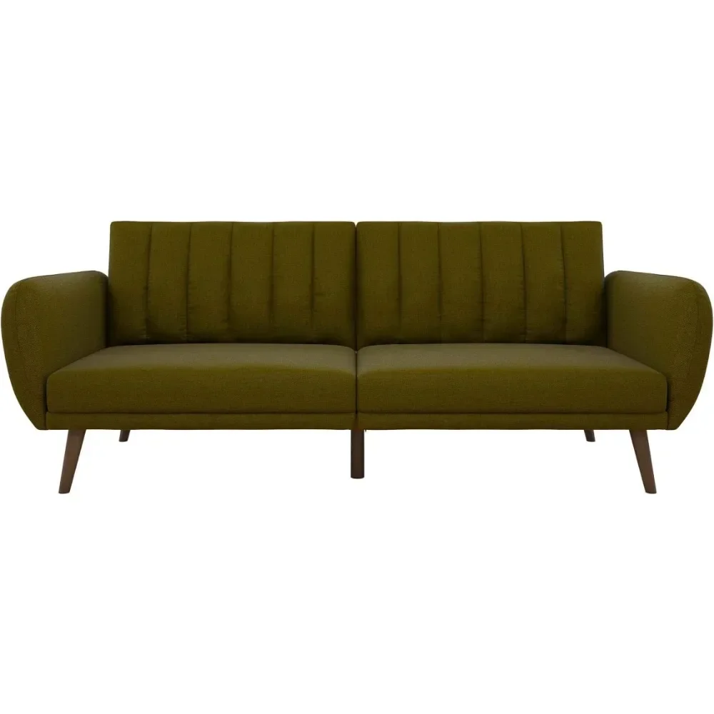 living room Sofa Futon - Premium Upholstery and Wooden Legs - Green couch sofas