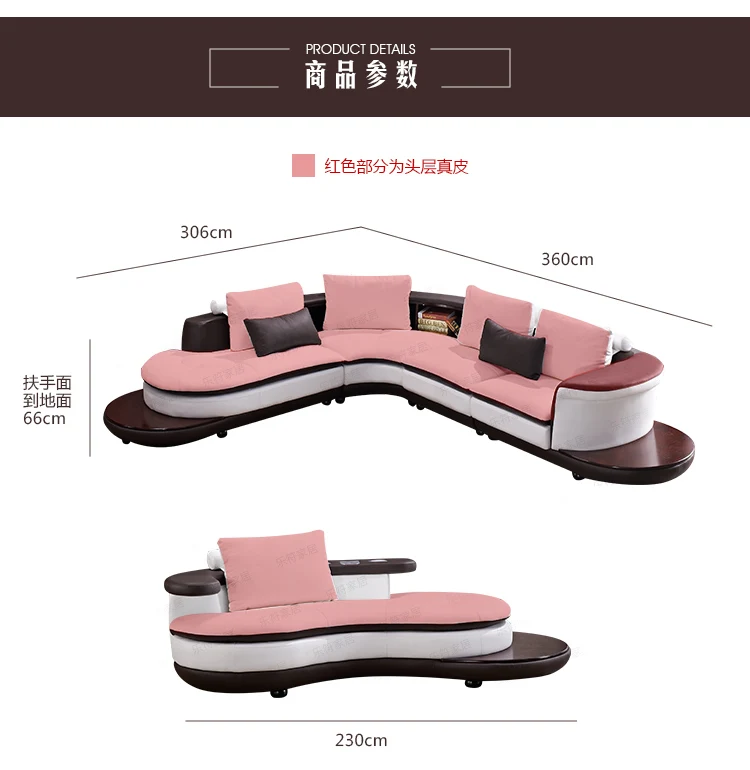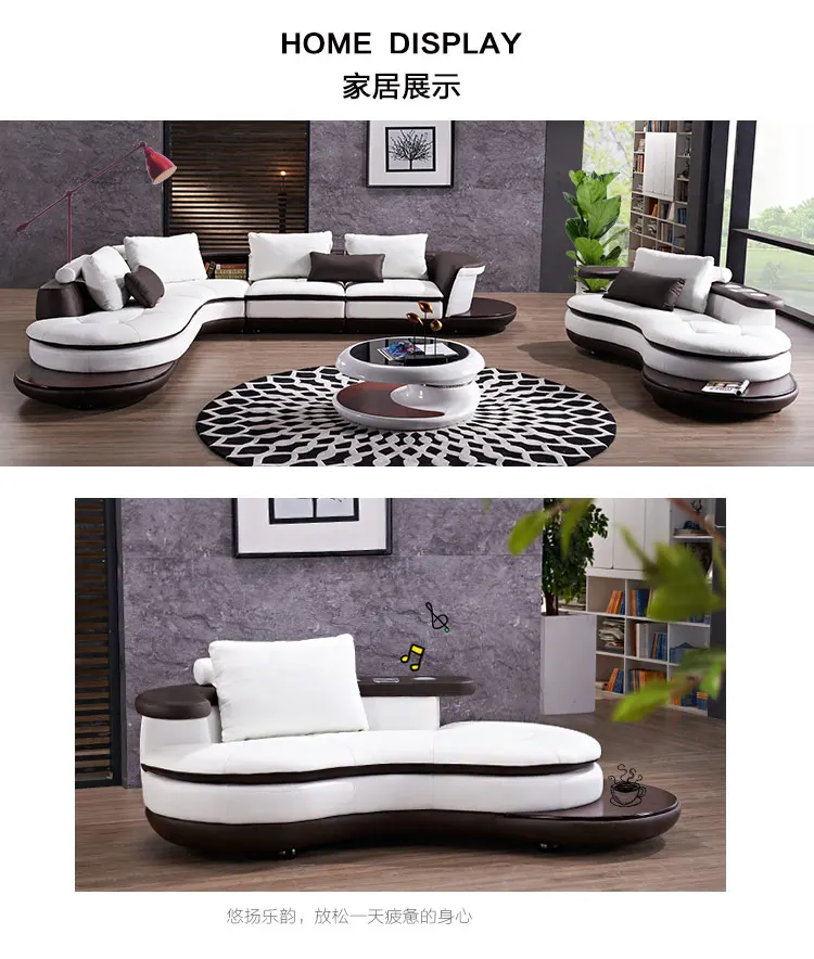 Living Room Sofa Italian Cow Genuine Leather Couch Muebles De Sala Cama Puff Asiento Sala Futon With Speaker USB Iphone Charging