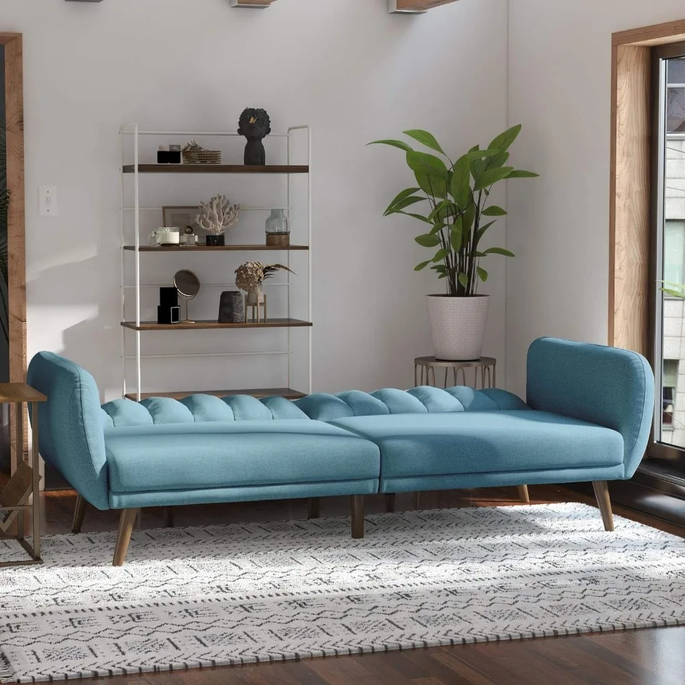 Living Room Sofas Brittany Sofa Futon - Premium Upholstery and Wooden Legs - Light Blue Sofa