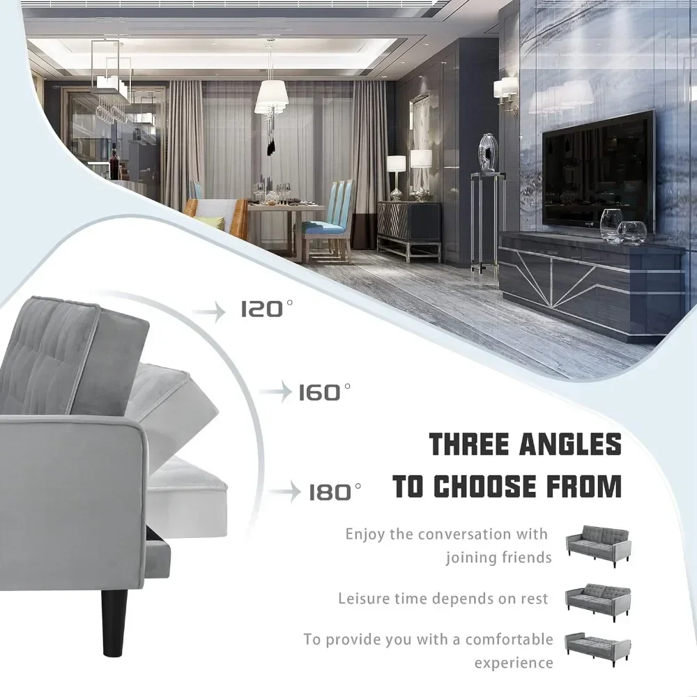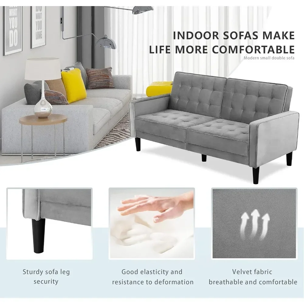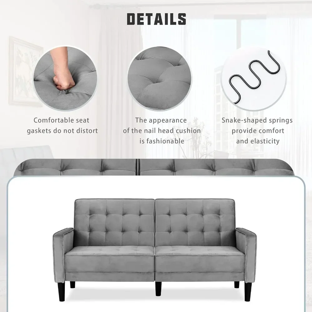 loveseat Couch, Mid-Century Velvet Upholstered Futon Sofa Bed, Fold Up/Down Adjustable Sleeper Sofa for Living Room, Apartment