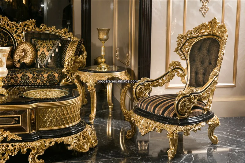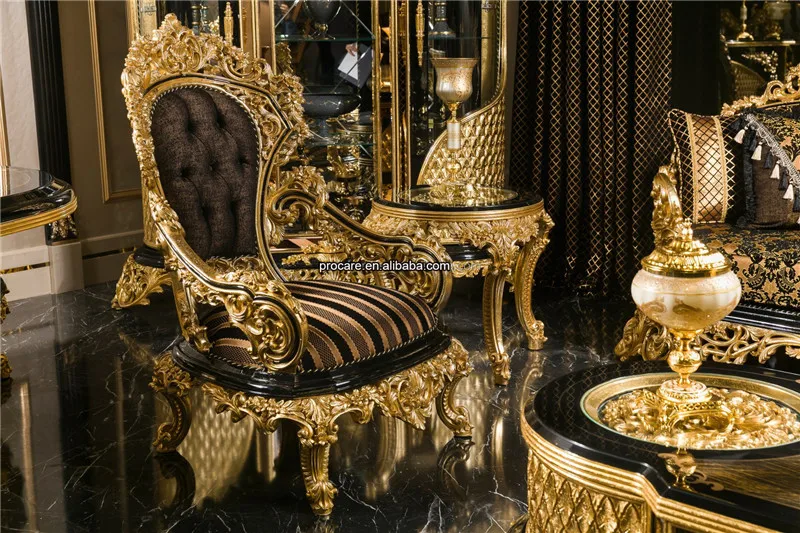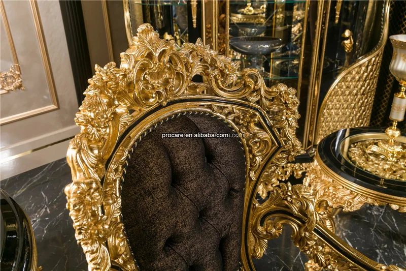 Luxury Antique Traditional Black Gold African Classical Baroque Royal Hand Carved Sofa Set Living Room Furniture Set