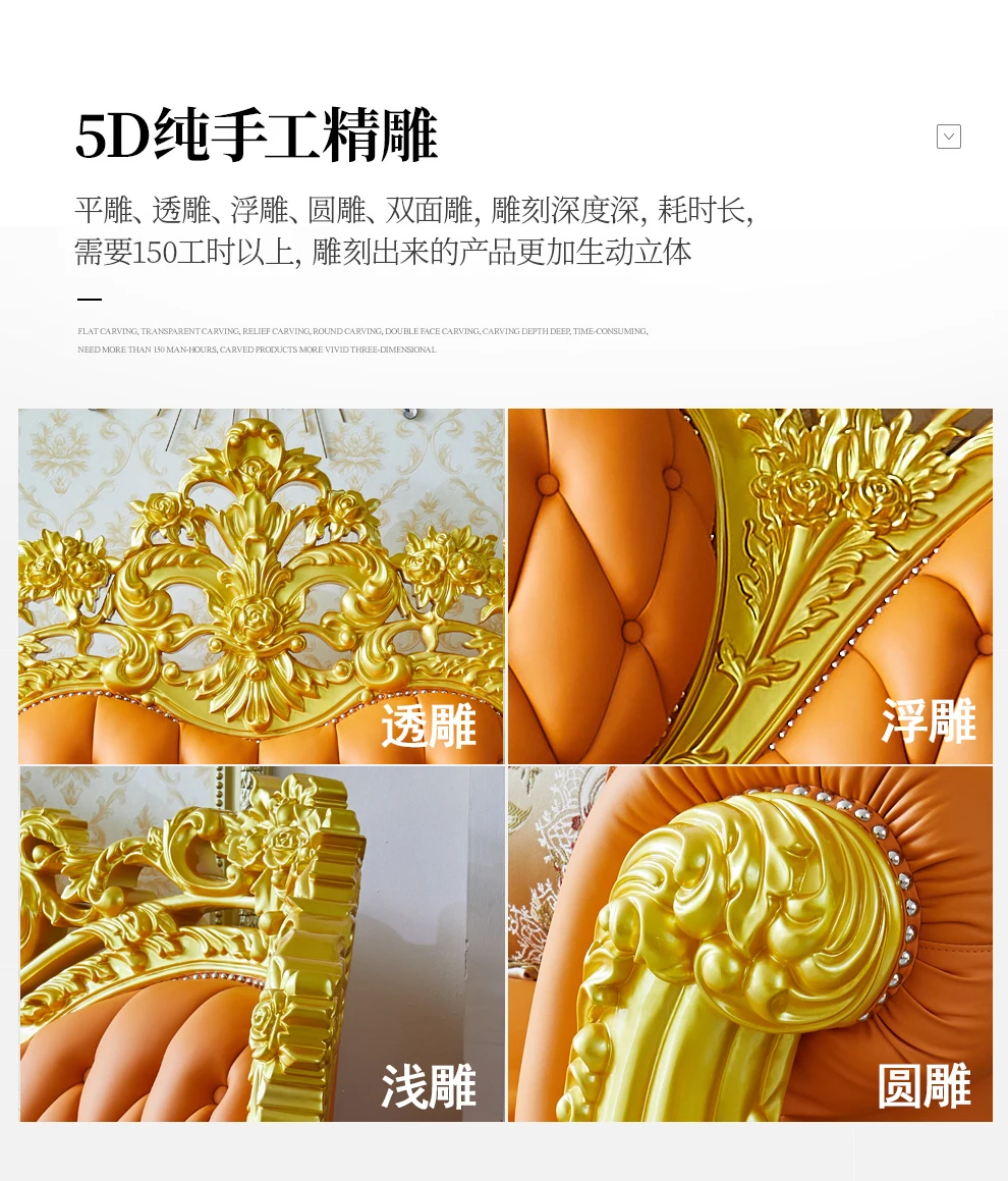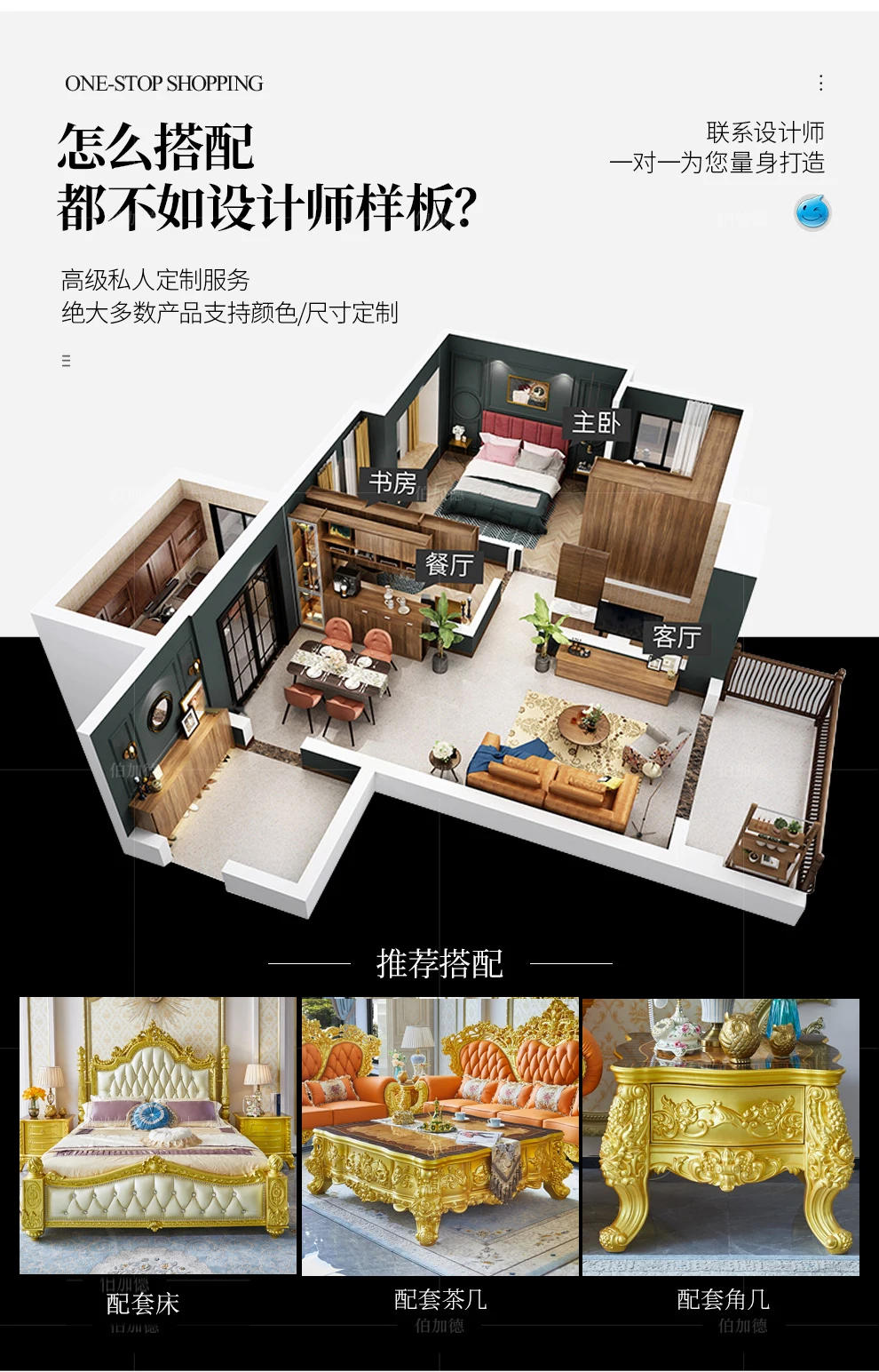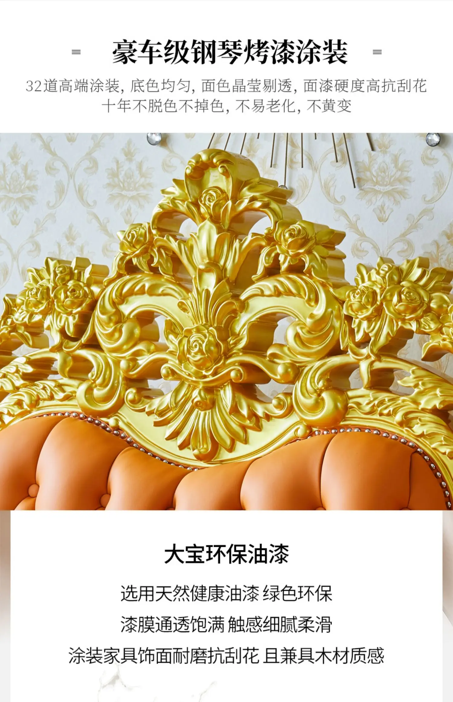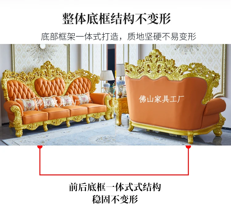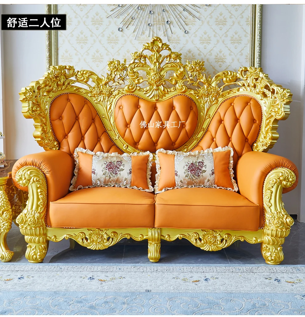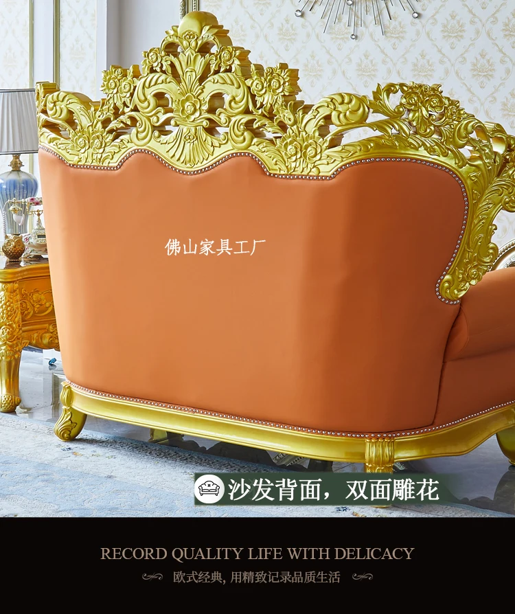 Luxury European Style Solid Wood and Genuine Leather Living Room Furniture Sofa Set 1234 for Large Villa House Paint and Carving