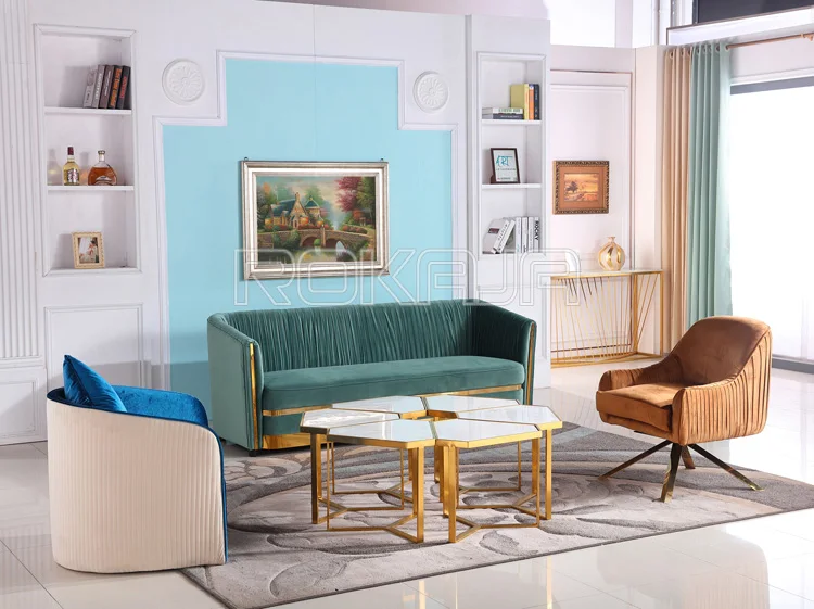 Luxury Fabric Sofa Set Gold Metal Foot Folds Fabric Sofa Italy Designs Living room Furniture