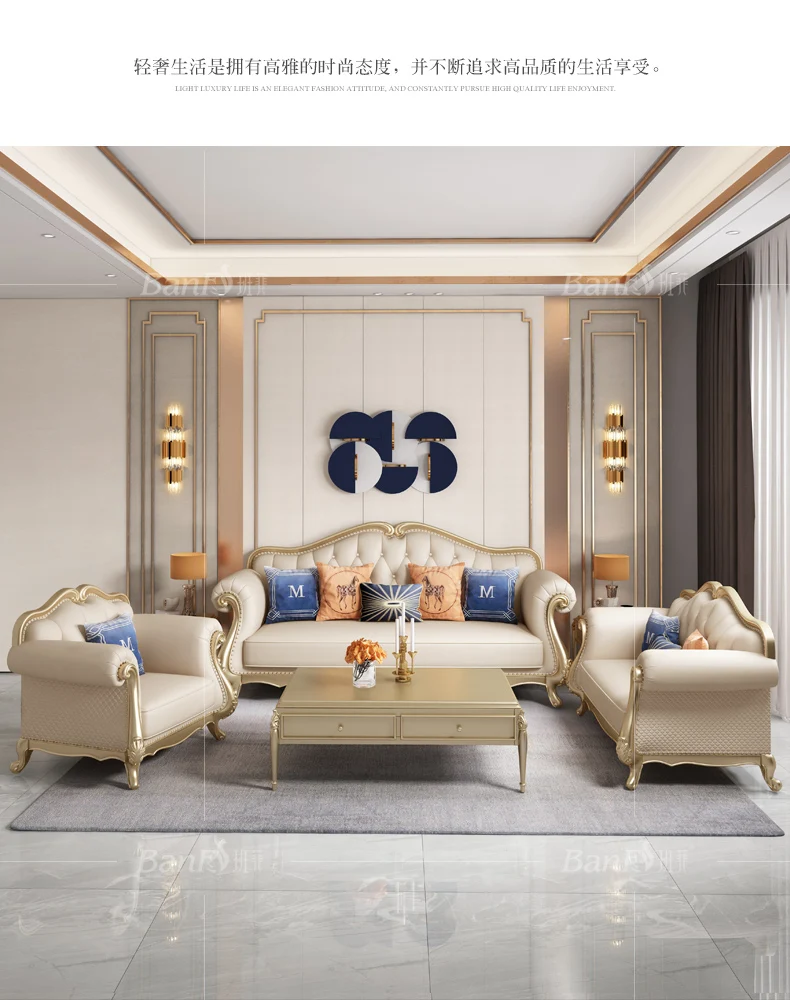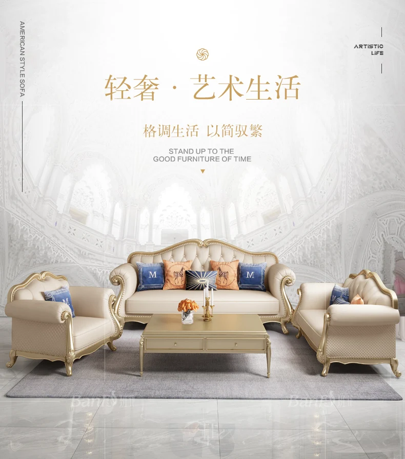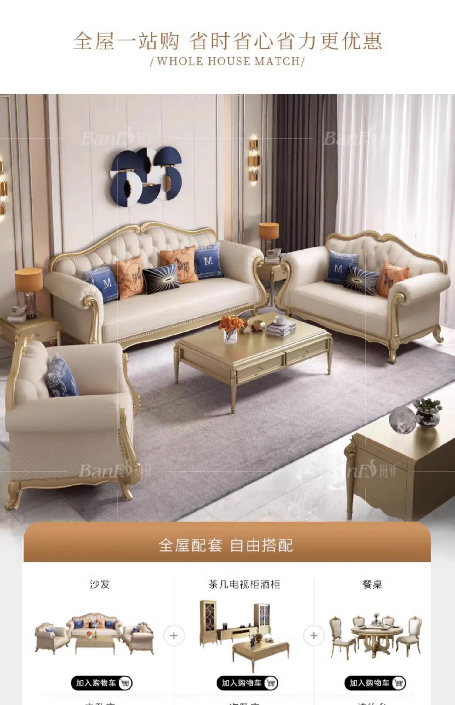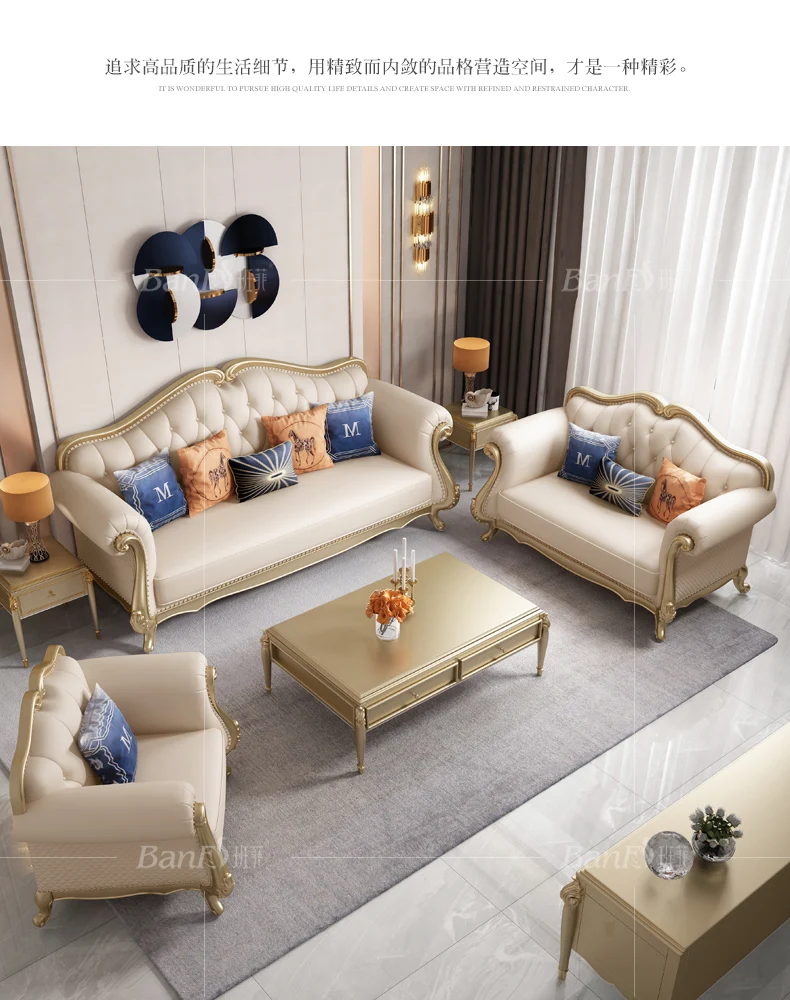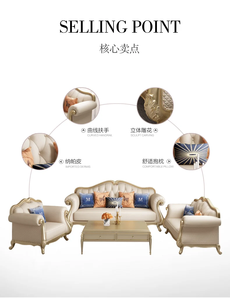 luxury French style designed well sell home living room furniture 7 seater wooden sofa set
