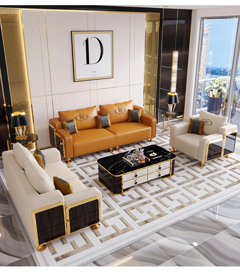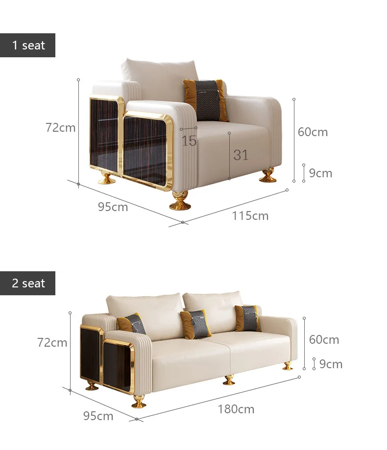 Modern Luxury Leather with Wooden Sofa Set, Fashion 2/3/4 Seater Sofa, Leather Couch for Living Room Accept Customzied Color