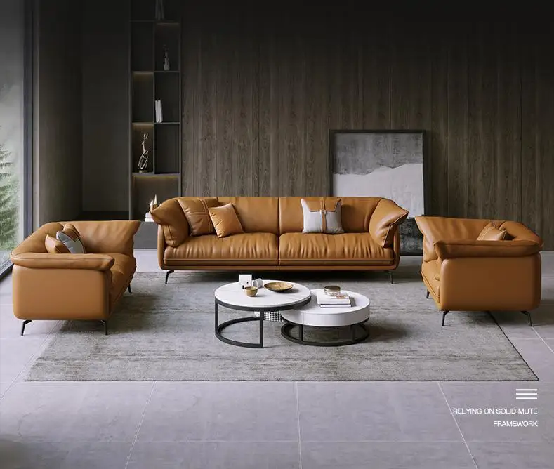 Modern Minimalist Living Room Leather Sofa Lazy Apartment Set Combination 3 Seater Nordic Couch Large Full Body Divano Furniture