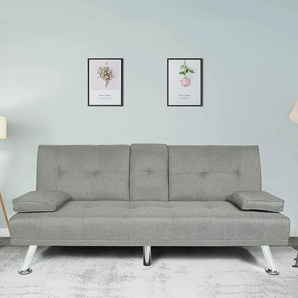Modern Sofa Convertible Sleeper Couch Bed For Living Room Apartment Small Space Furniture Sets With 2 Cup Holders Metal Legs