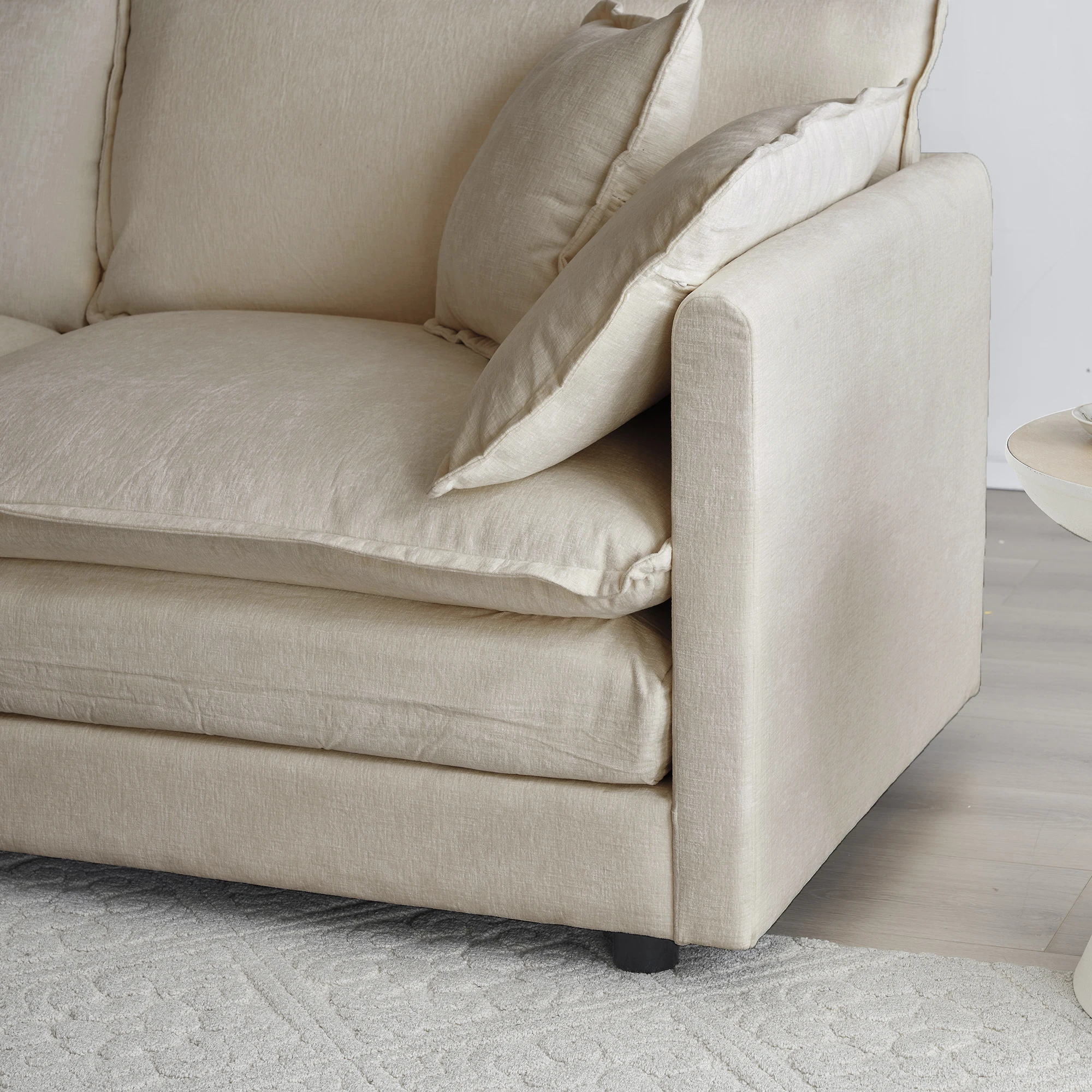 Premium Material - Sturdy solid wood frame, high end breathable Chenille fabric, filled with high quality sponge, making this sectional sofa beautiful and comfort, it can be perfectly support your body shape and give you relaxation feelings after a big day.