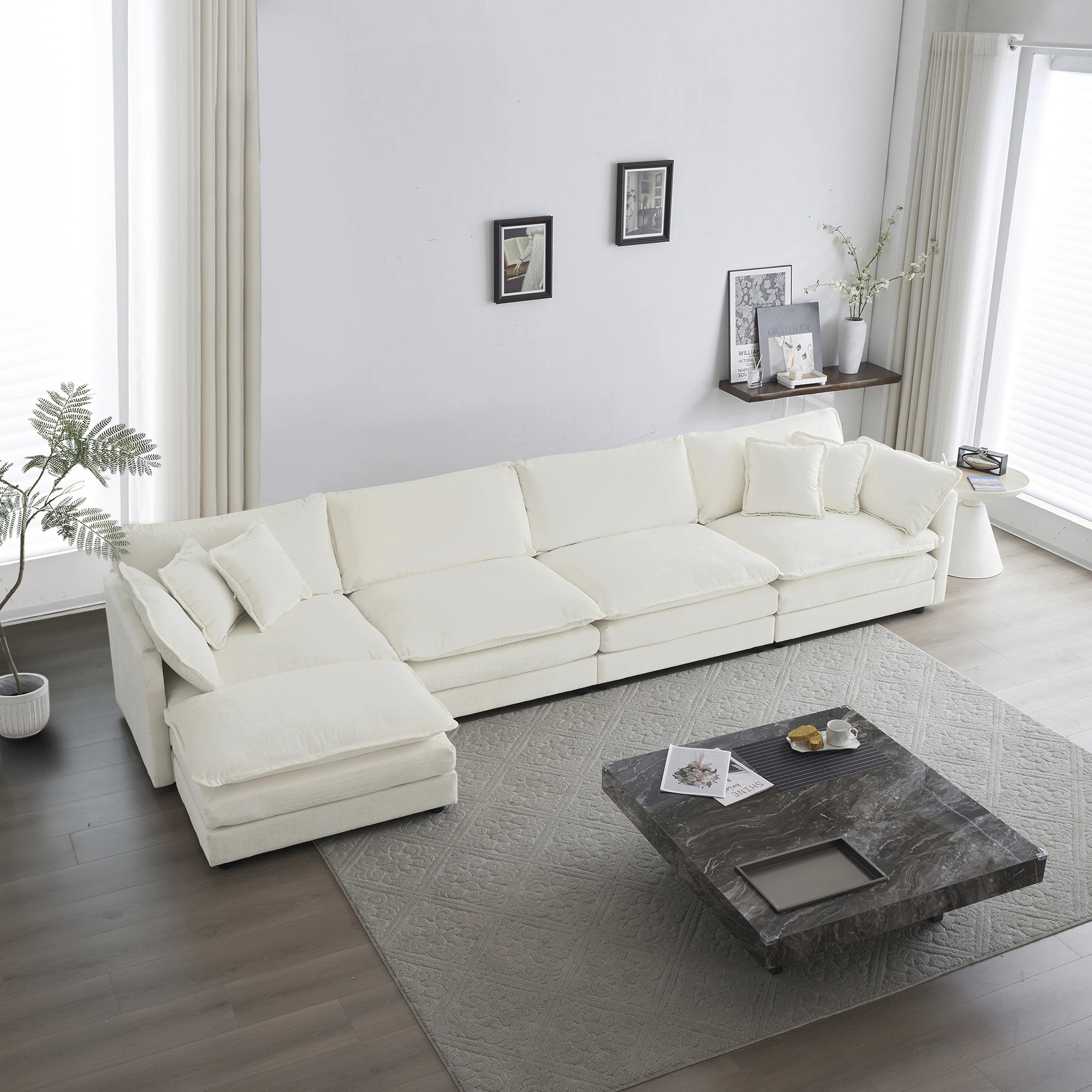 Modular Sectional Sofa L Shaped Couch 5 Seater Convertible Double Bag Sofa W/1 Ottoman White/Beige/Green Chenille for LivingRoom