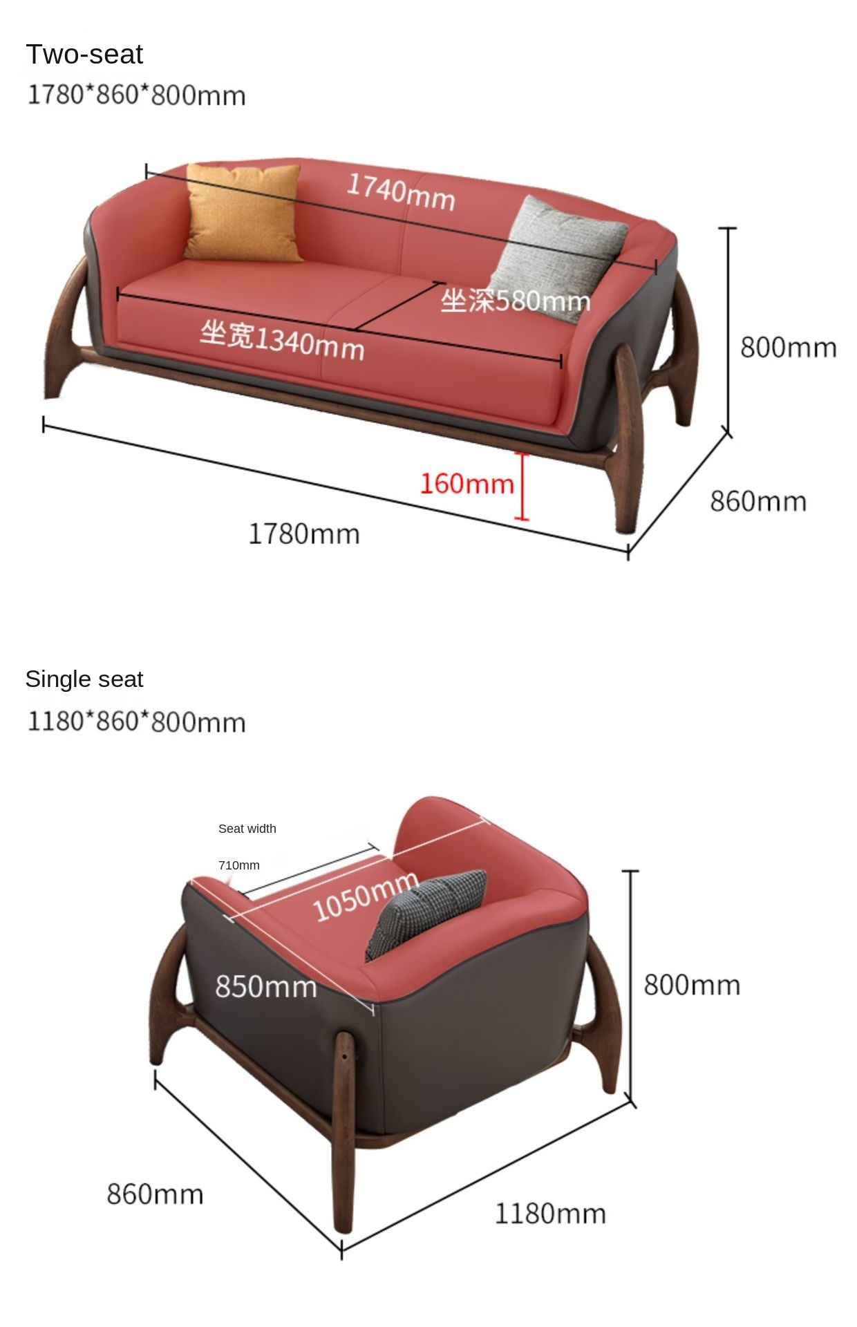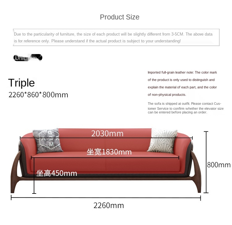 Materials: leather, solid wood frame, high density sponge