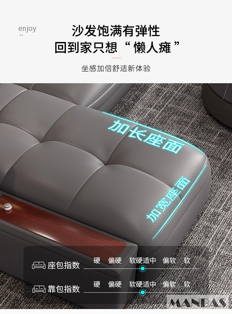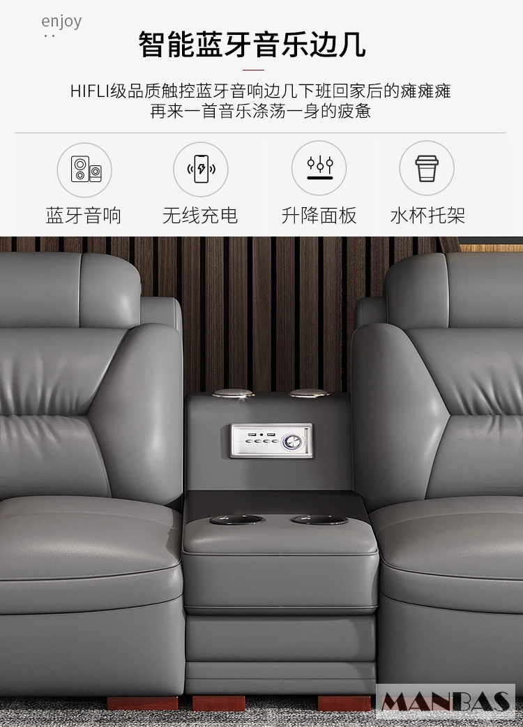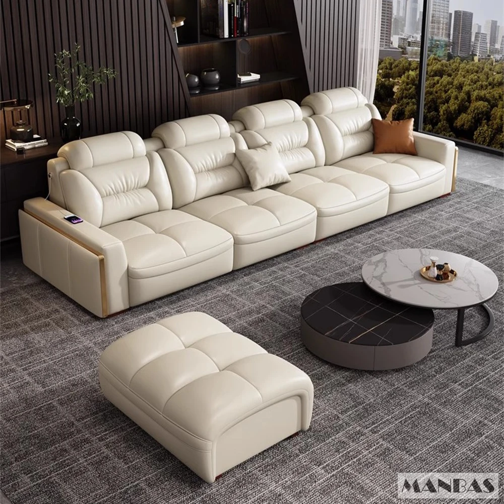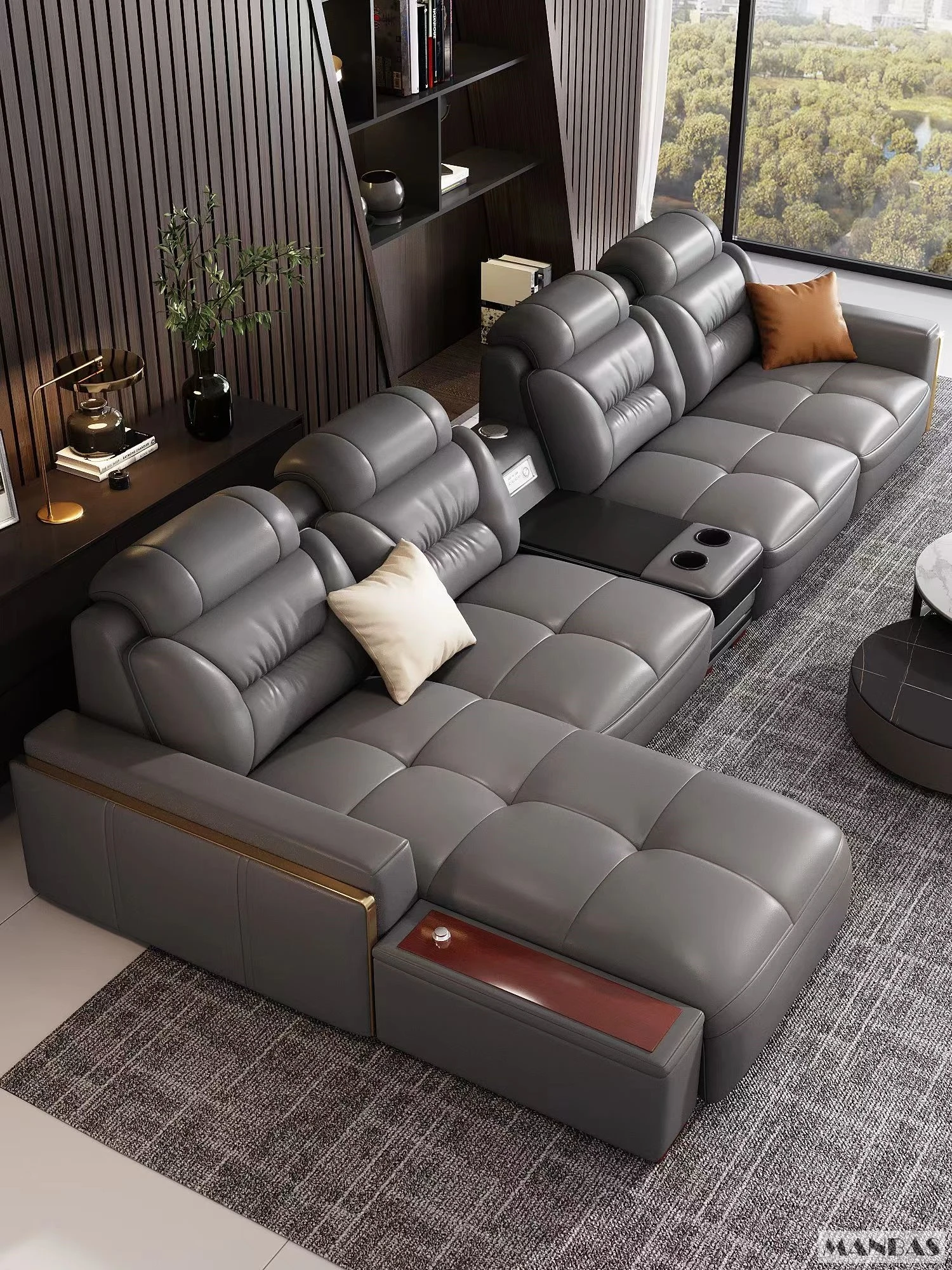Premium Italian Genuine Leather Sectional Sofa Sets Couch Sofas with USB and Bluetooth Speaker - MINGDIBAO Living Room Furniture