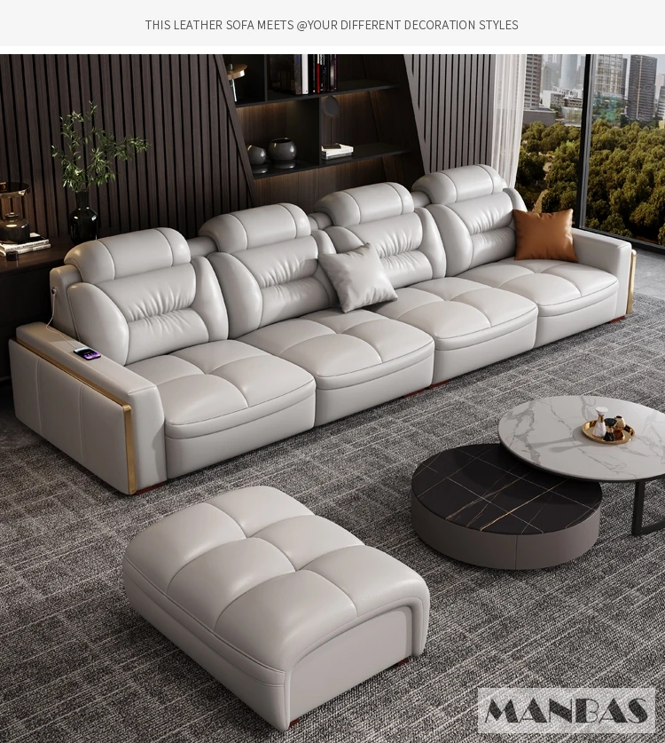MINGDIBAO Luxury Italian Genuine Leather Sectional Sofa Couch with USB and Bluetooth Speaker - Modern Living Room Sofas