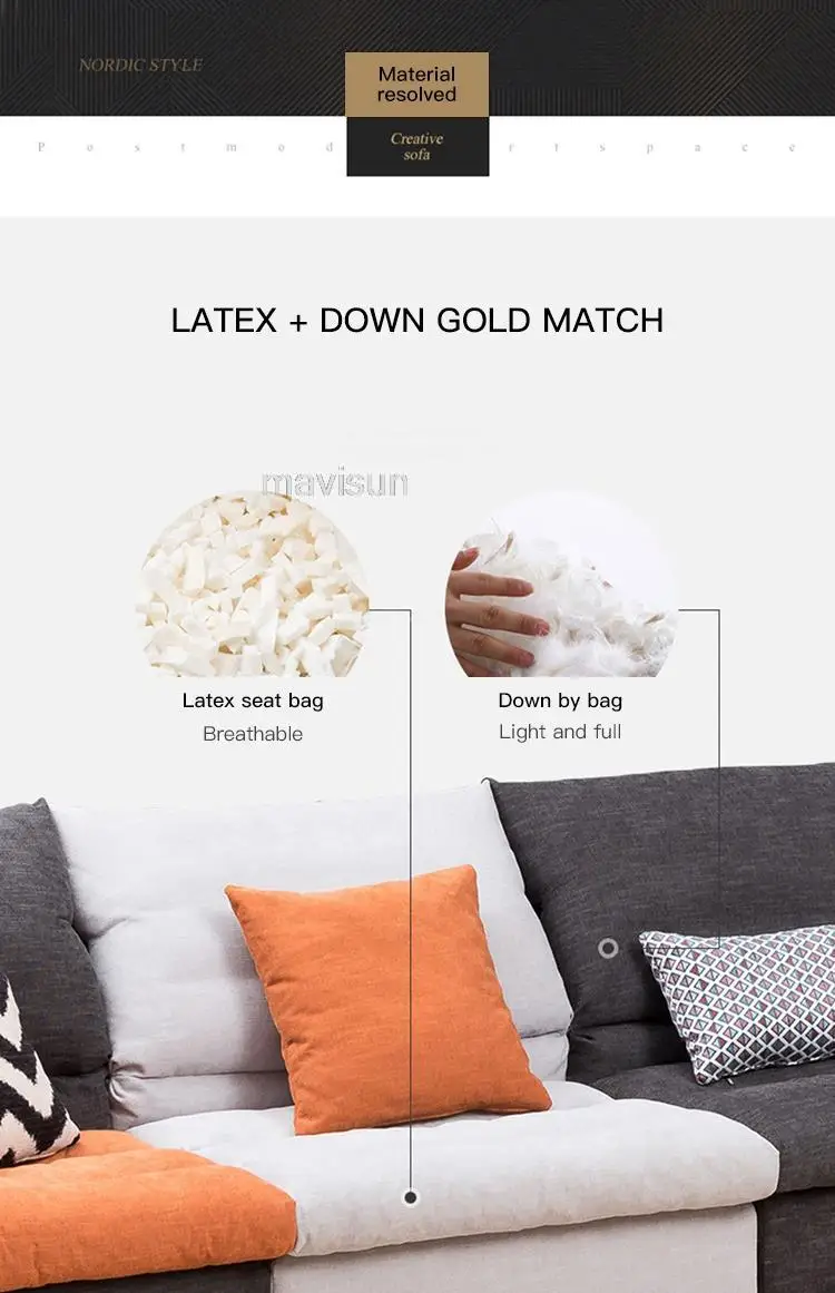 Sofa filling: Down/latex/45D high resilience sponge