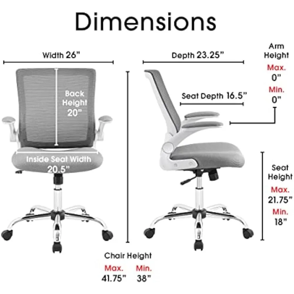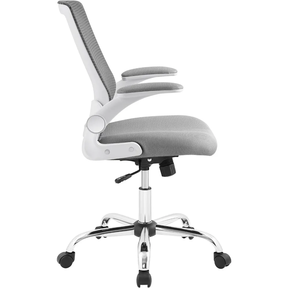 Sleek and comfortable, the Serta Creativity Mesh Office Chair is designed with the professional in mind. This swivel ergonomic office chair features contoured seating and mid-level back support to help encourage good posture. A breathable mesh back allows for ventilating air flow, while the seat cushion and padded arms help keep you comfortable when sitting for long periods of time. Cushioned adjustable armrests can be flipped up, so the chair fits under any desk. Innovative and performance-focused, this mesh desk chair is constructed with a polished chrome base and a modern silhouette to bring high-end style to any home or professional office space.