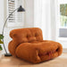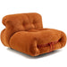 【Structural Features】The Chair features a unique curvilinear shape inspired by the human body. Its entire body is wrapped with generous upholstery fixed with a giant metal brace, and the seat and backrest cushions feature a quilted effect created with upholstered buttons.