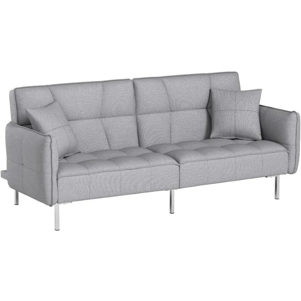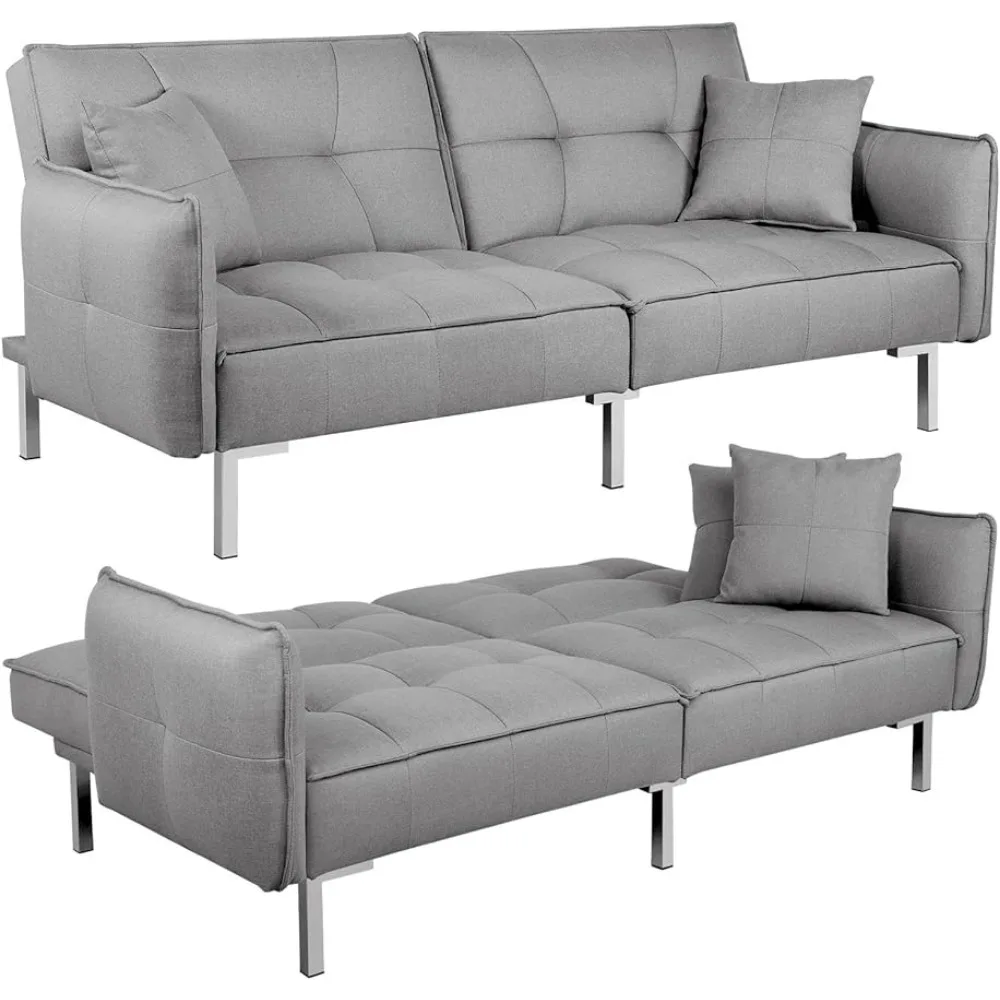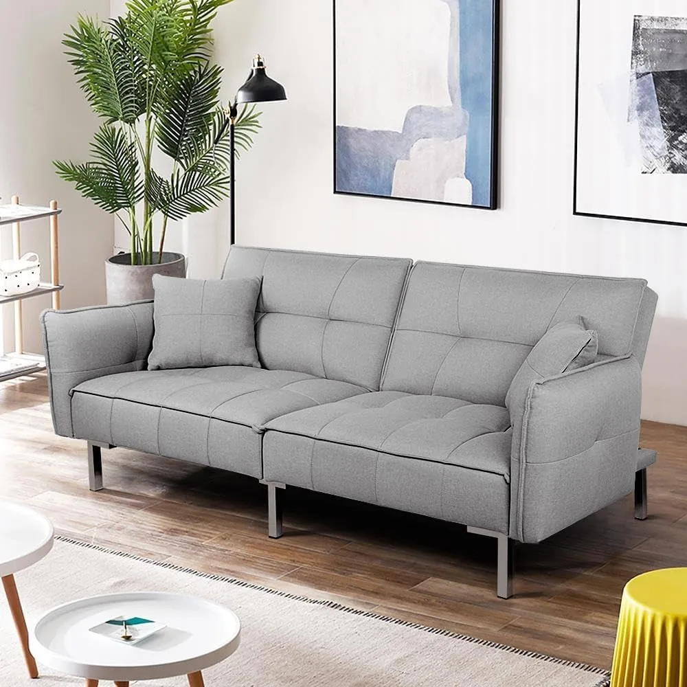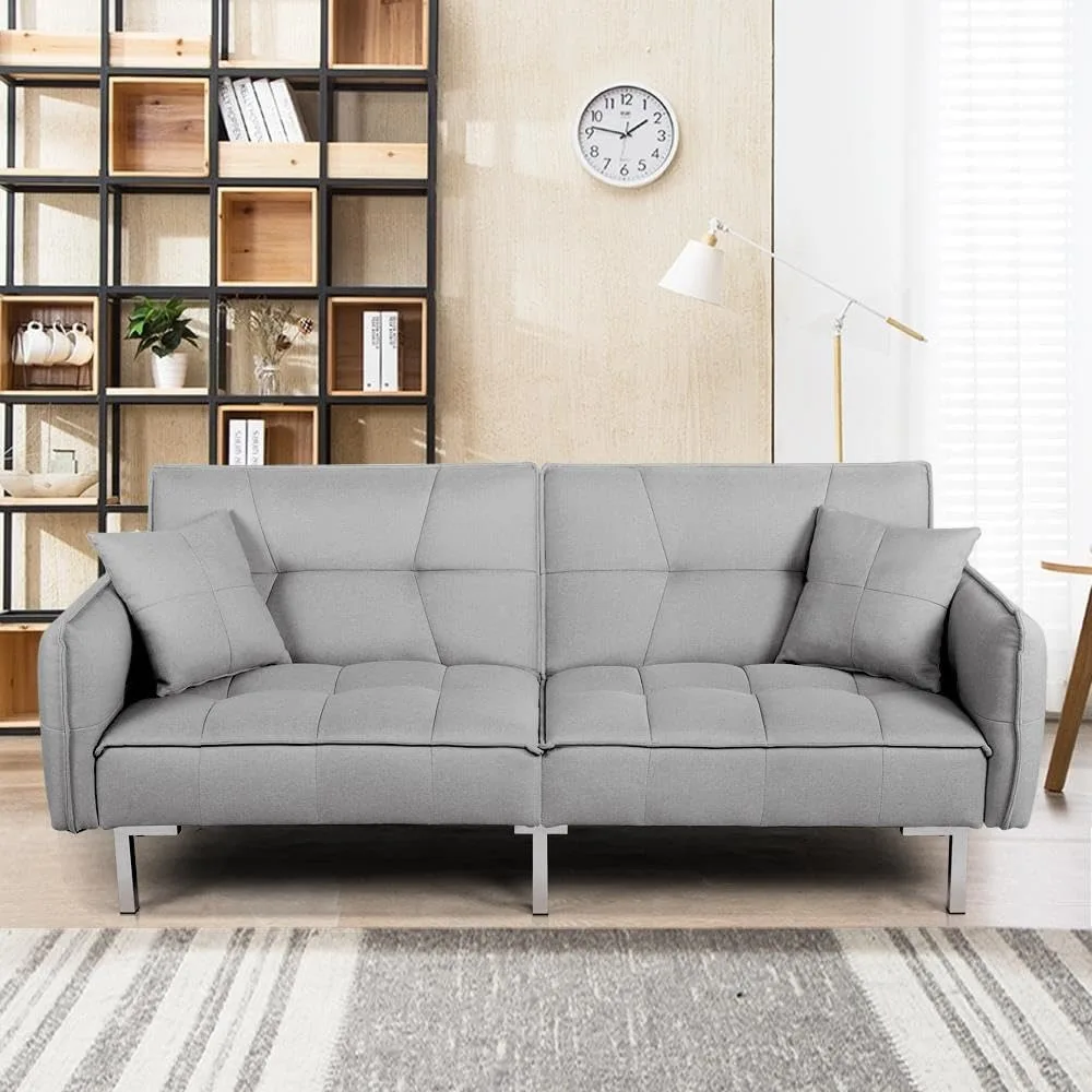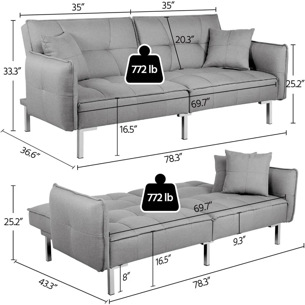 Sleeper Sofa Couch Bed Convertible Futon Couches Sofas Bed Fold Up and Down Linen Fabric Recliner Living Room Gray Couch
