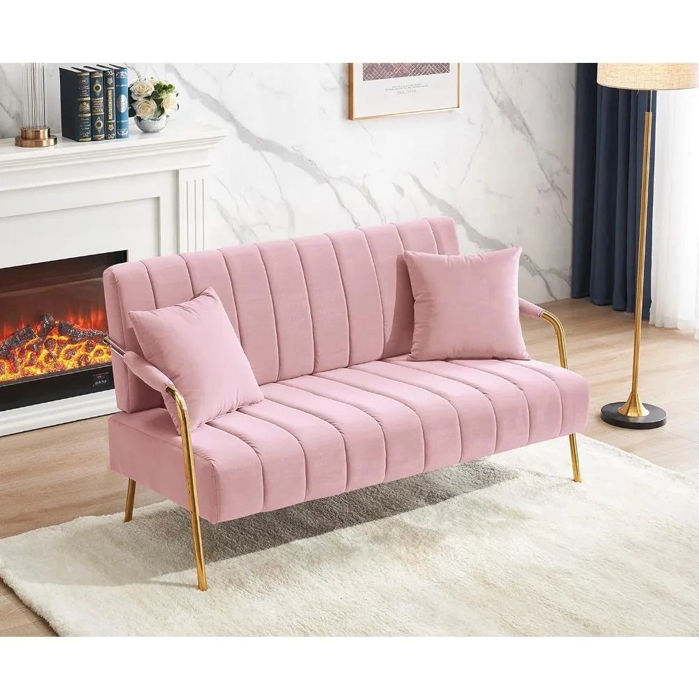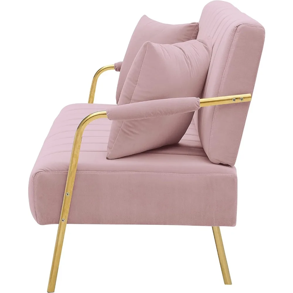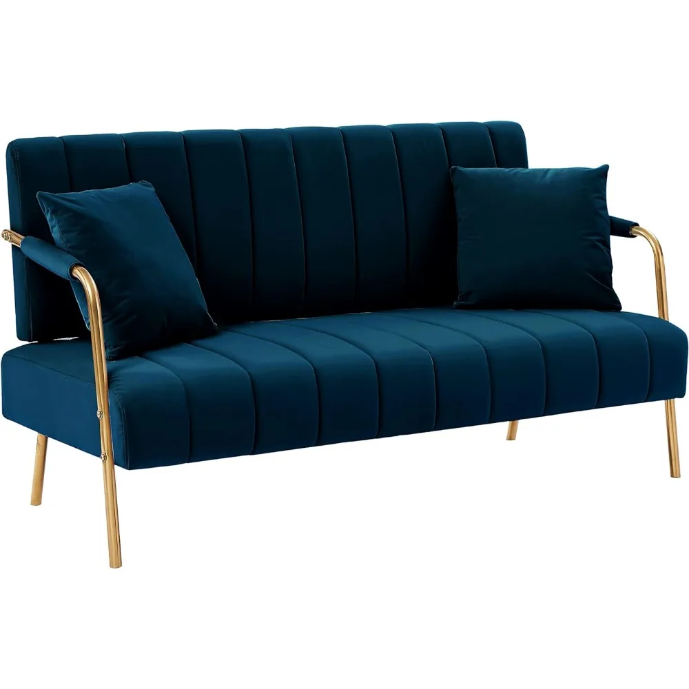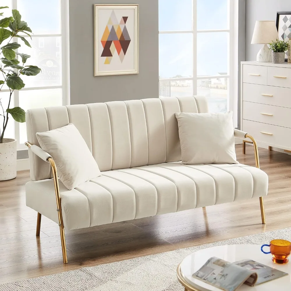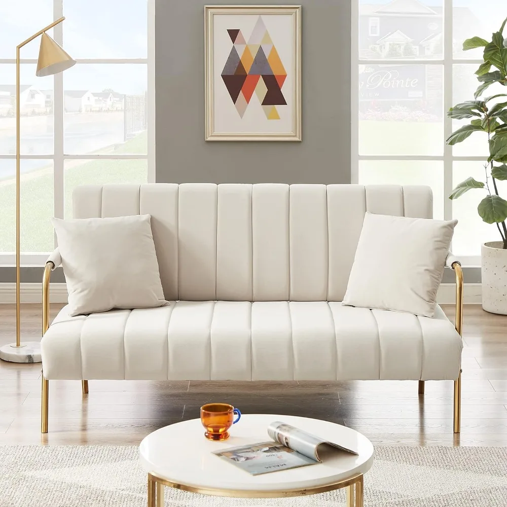 - 💝Comfortable Upholstered Sofa Couch💝Upholstered Sofa Couch with Golden Metal Legs is thickened and cushioned. Although the armrests are made of metal, the hand rest area is wrapped in Australian cashmere, so there is no need to worry about the comfort of the sofa armrests.