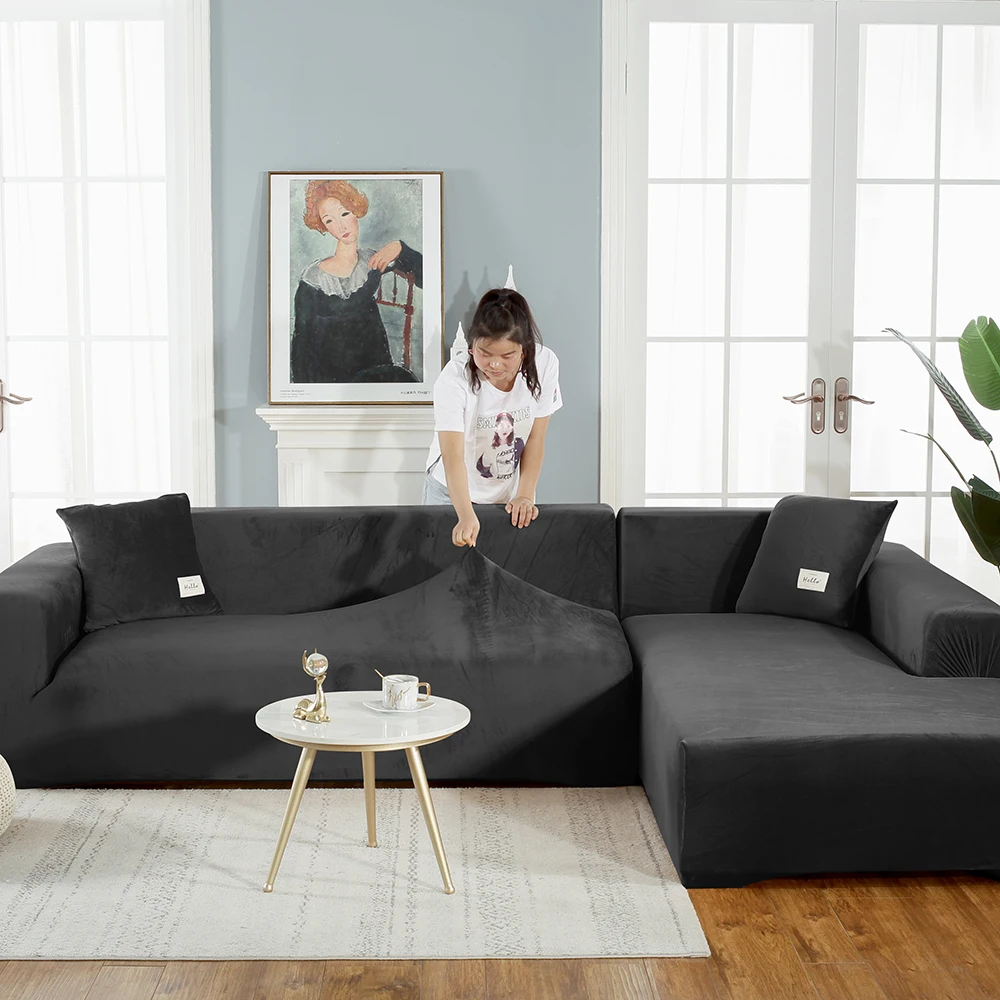 Velvet Sofa Covers Elastic Sectional Couch Cover L Shaped Sofa Slipcovers Case Armchair Chaise Lounge Case for Living Room