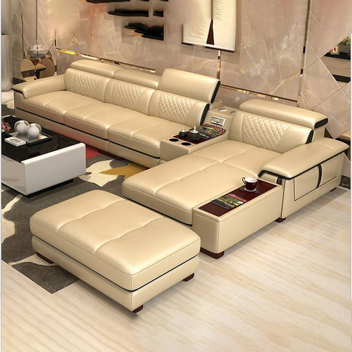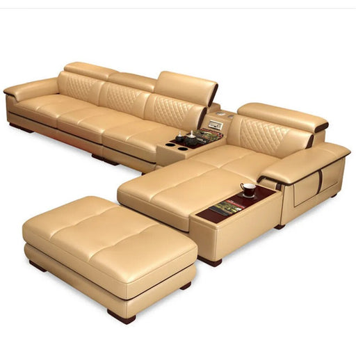 Original price $3,956.99 - Original price $4,676.99Original price $3,956.99 - Original price $4,676.99Original price $3,956.99$3,165.99 - $3,741.99$3,165.99 - $3,741.99Current price $3,165.99| /MANBAS Leather Sectional Sofa Set with Cup Holder, USB, Adjustable Headrests & Bluetooth Speaker Living Room Couch with Stool