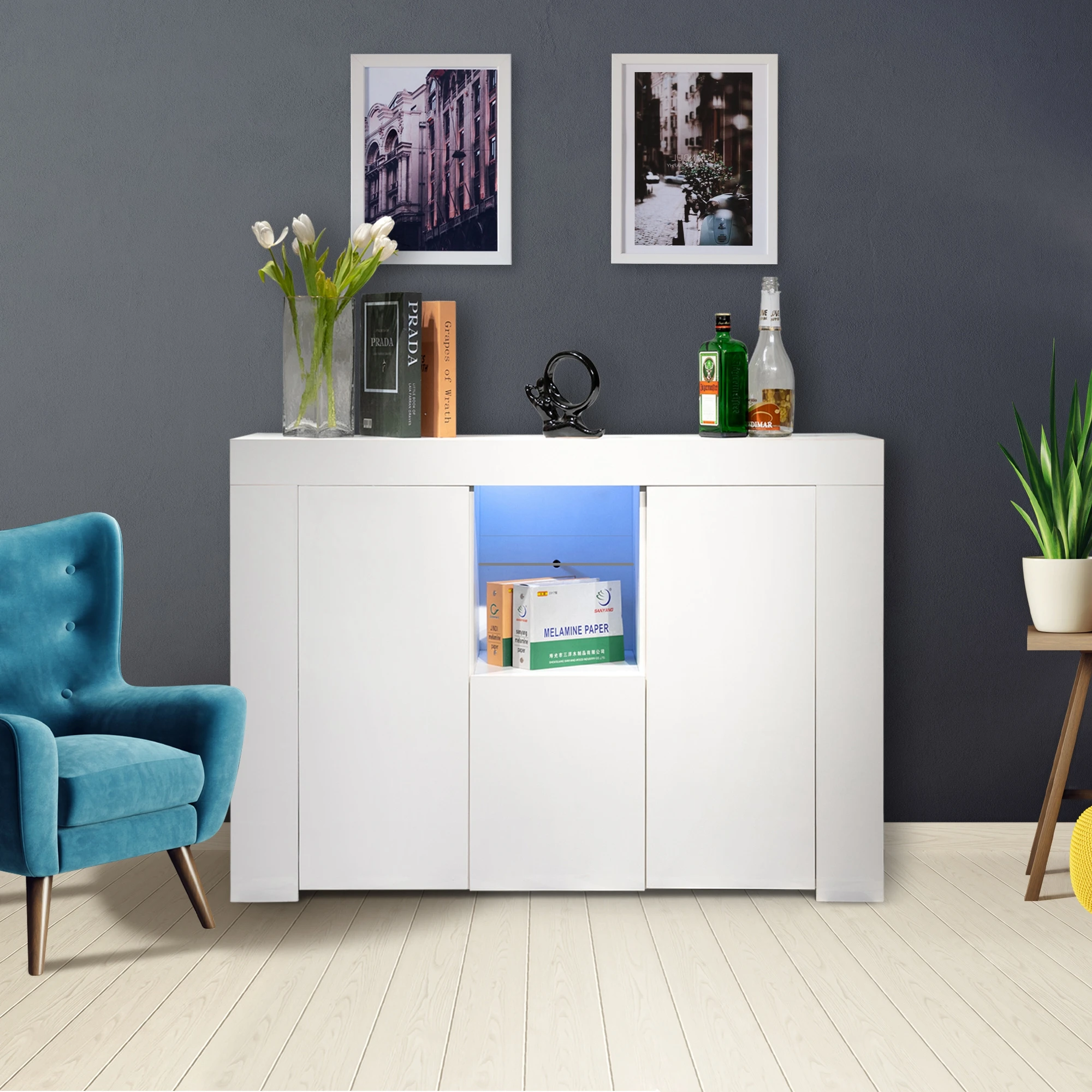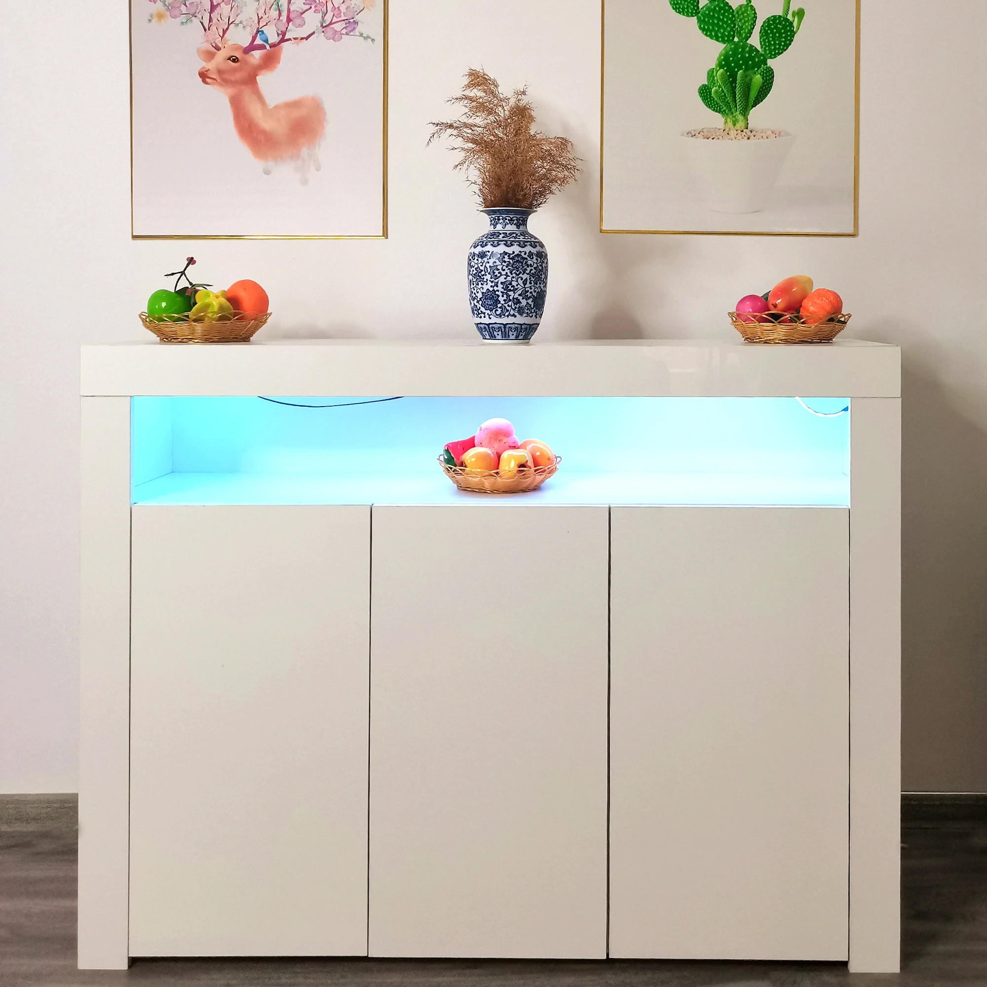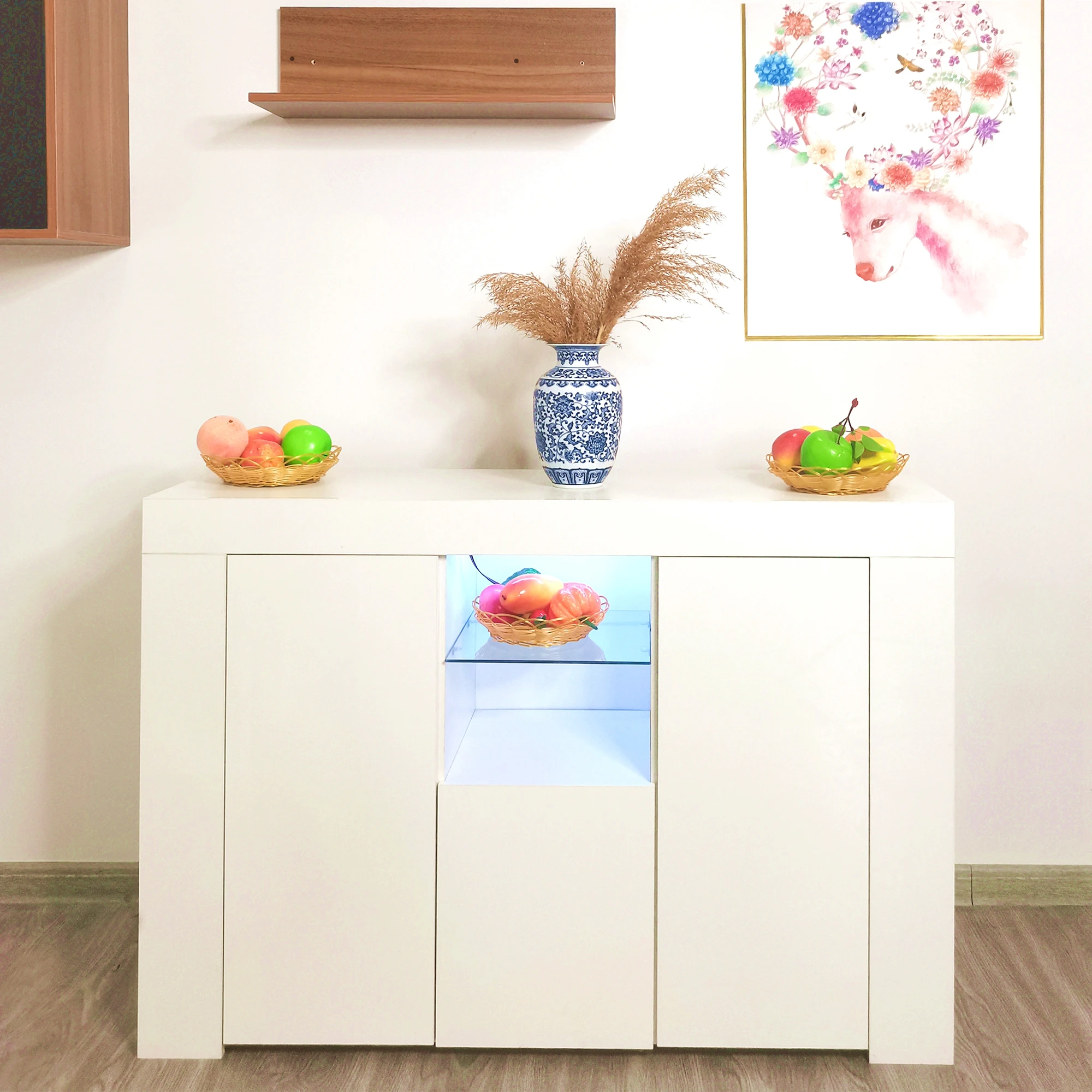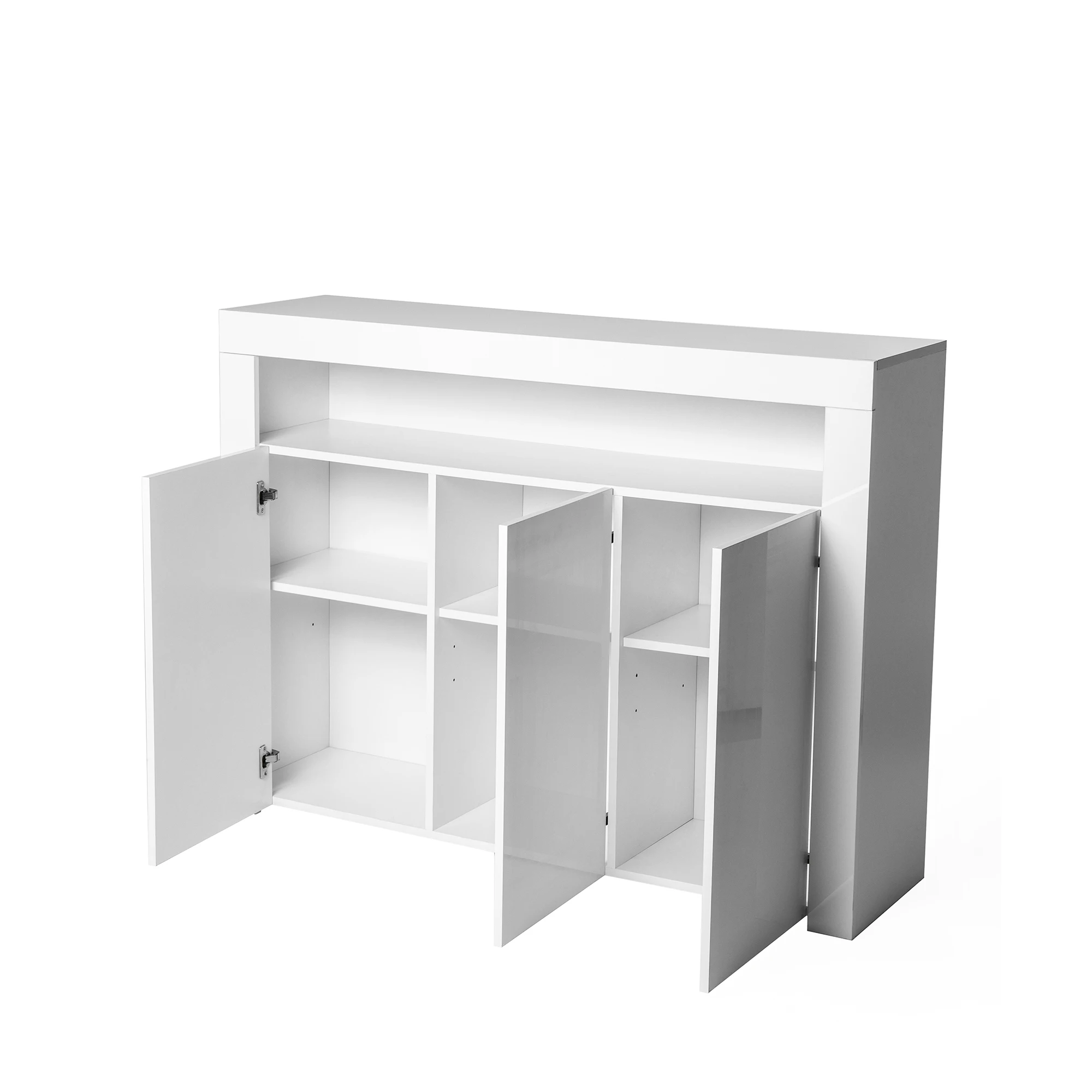 16 Color Adjustable Led Sideboard White UV High Glossy Coated Kitchen Cabinet 130x35x97CM for Restaurant Living Room etc[US-W]