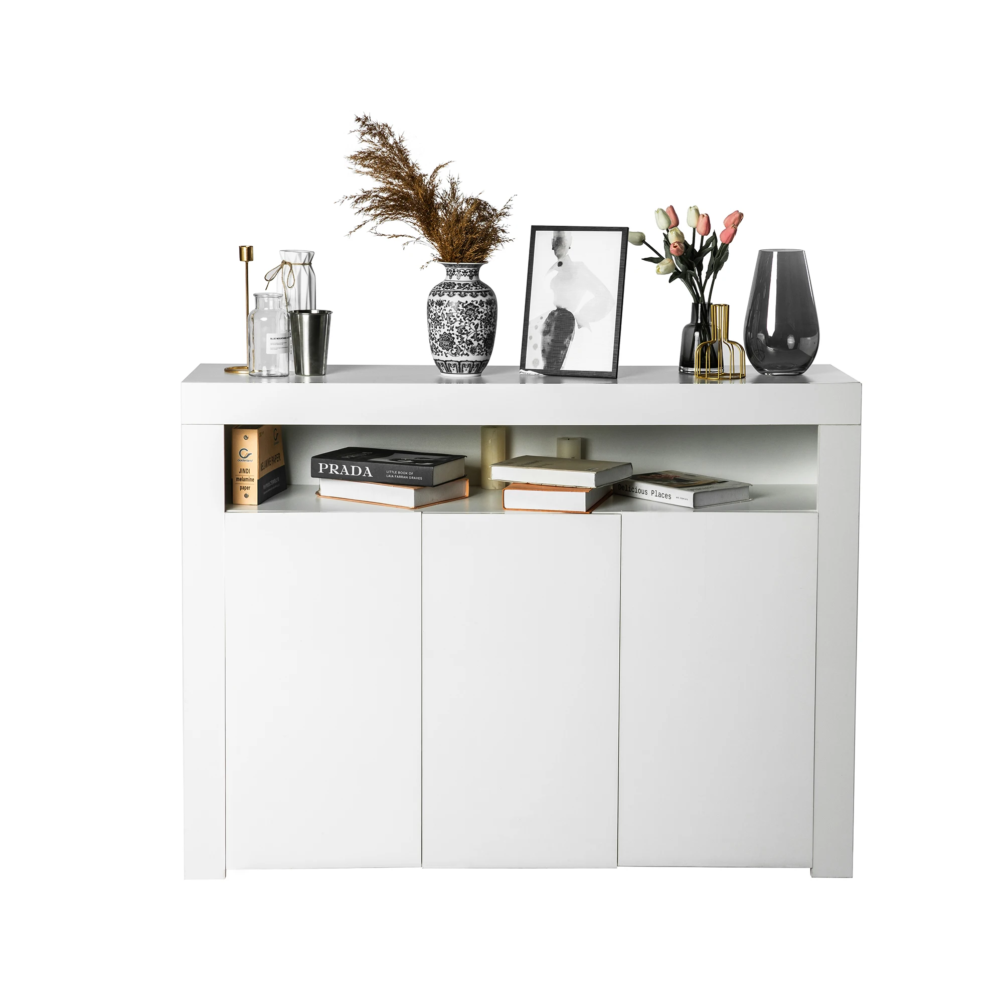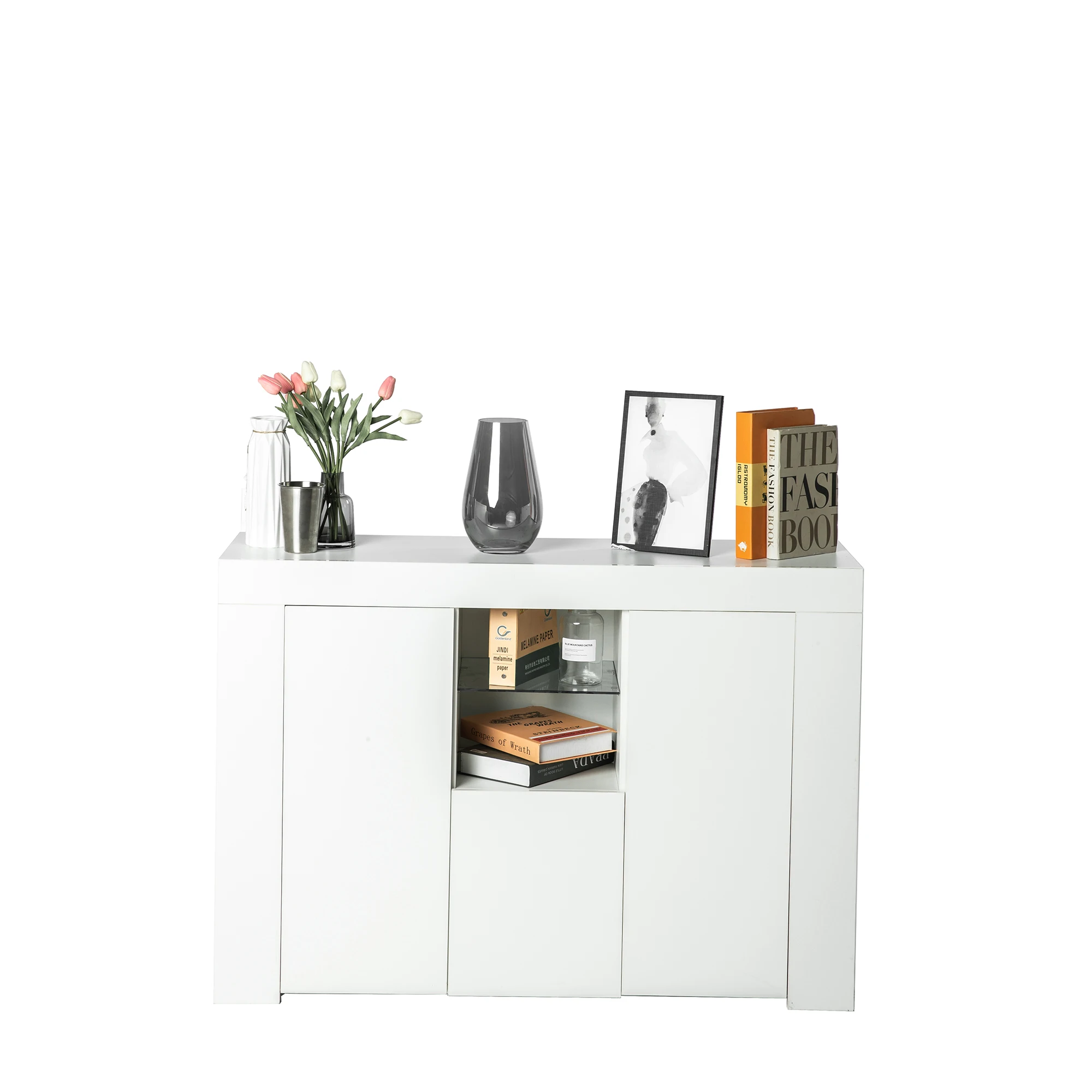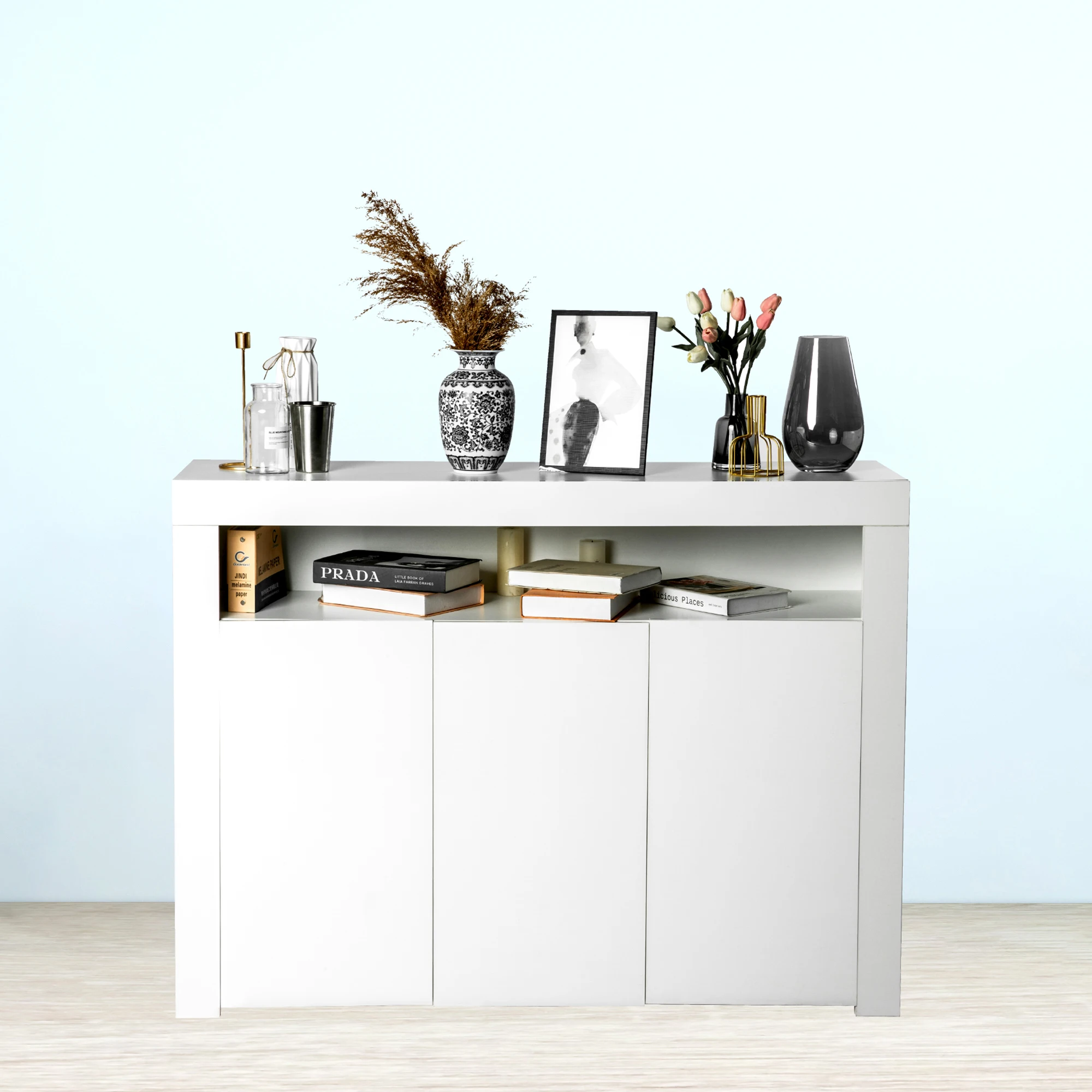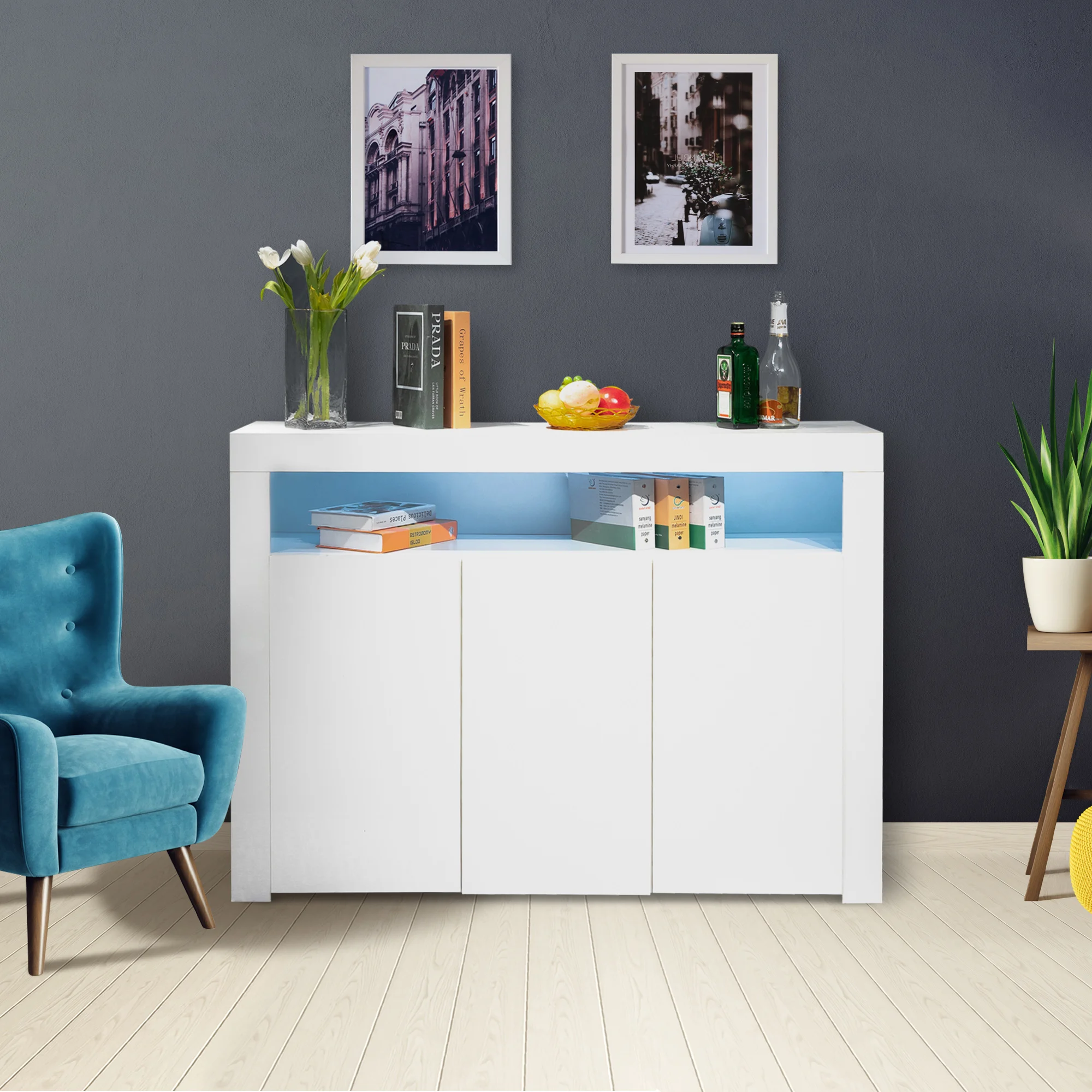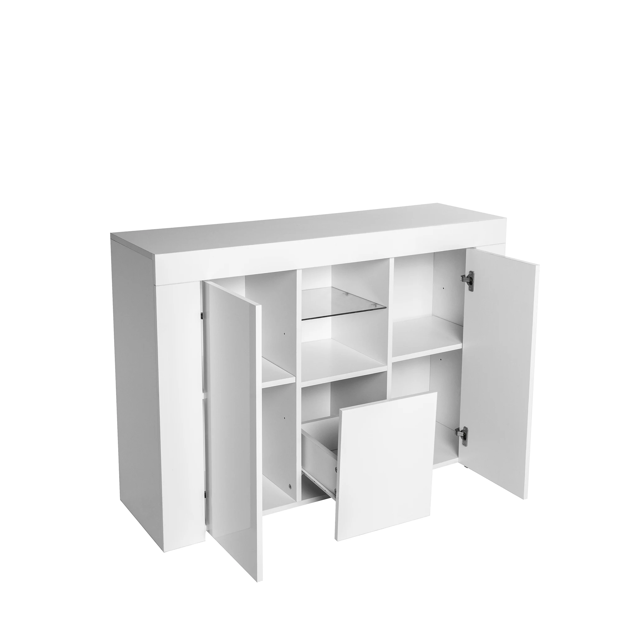 16 Color Adjustable Led Sideboard White UV High Glossy Coated Kitchen Cabinet 130x35x97CM for Restaurant Living Room etc[US-W]