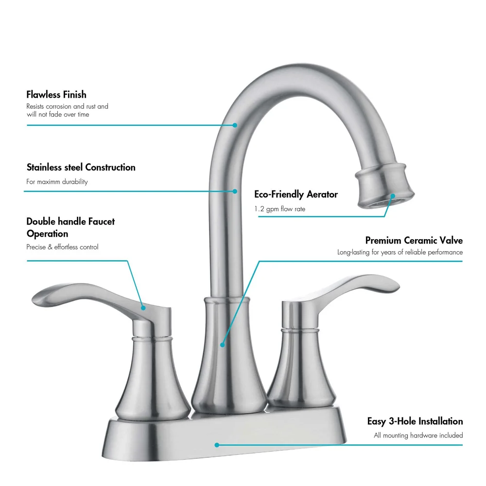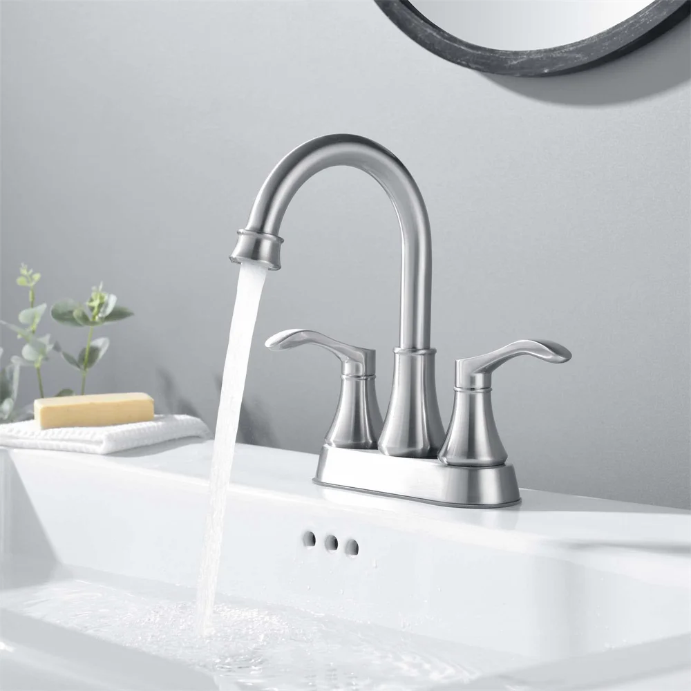 2 Handles Bathroom Sink Faucet 3 Hole Stainless Steel Bathroom Basin Faucet Hot Cold Mixer Shower Head Bathroom Accessories