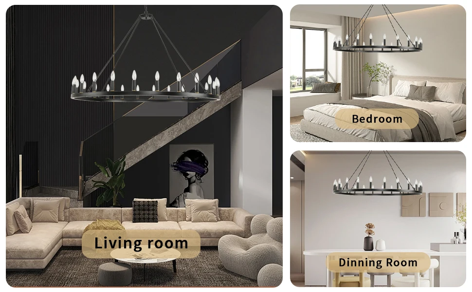 【Applicable Occasions】This black chandelier are ideal for lighting high ceilings, kitchen islands, living rooms, bedrooms, corridors, entrances, hallways, stairs, cafes, hotels and other places.