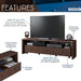 This contemporary and Elegant smvp TV stand, for TVs up to 75";, is designed to fit any bedroom or family room. It features three drawers and 3 shelves for optimal storage with a back panel opening for cable management.