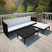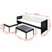 This rattan lounge set combines style and functionality. It will be the focal point of your garden or patio. The rattan lounge set is designed to be used outdoors year round. Thanks to the weather-resistant and waterproof PE rattan, the lounge set is easy to clean, hard-wearing and suitable for daily use. The seat features a sturdy, powder-coated steel frame, which is highly durable. It is also light weight, making it easy to move around. The stool can be moved around freely to suit your personal needs. The thick, removable seat and back cushions with vertical fiber cotton filling ensure ultimate seating comfort. The easy-to-clean polyester covers with concealed zippers can be removed and washed. The modular rattan lounge is very flexible and can be easily moved around to suit any setting! Delivery includes 1 three-seat sofa, 1 stool, 1 coffee table, 3 seat cushions and 3 back cushions. Note: 1) We recommend covering the set in rain, snow and frost.Note: 2) This item will be shipped flat packed. Assembly is required; all tools, hardware and instructions are included.