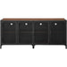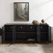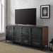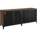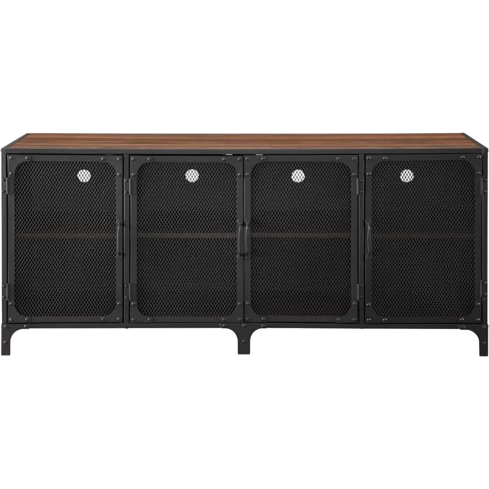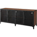 This urban industrial storage console will make a great addition to your home whether you use it as an entertainment center, storage cabinet, or kitchen buffet. With a gorgeous blend of metal hardware, mesh metal doors, and high-grade MDF that's finished with a durable laminate, this piece will add a sense of character to your living room or bedroom. Two separated cabinets on both sides of the large center cabinet let you easily organize your items out. Additionally, with adjustable shelves and cord management options, this console will become precisely what you desire for your home. It can accommodate TVs up to 65-inches.