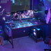 This large computer desk is made from a trapezoidal structure design which makes this large table so sturdy and modern, the desktop panel can hold up to 200 pounds, It's perfect for your home office, living room, bedroom, gaming room, study room, or workstation. Armocity Computer Desk with LED Light & Power Outlet