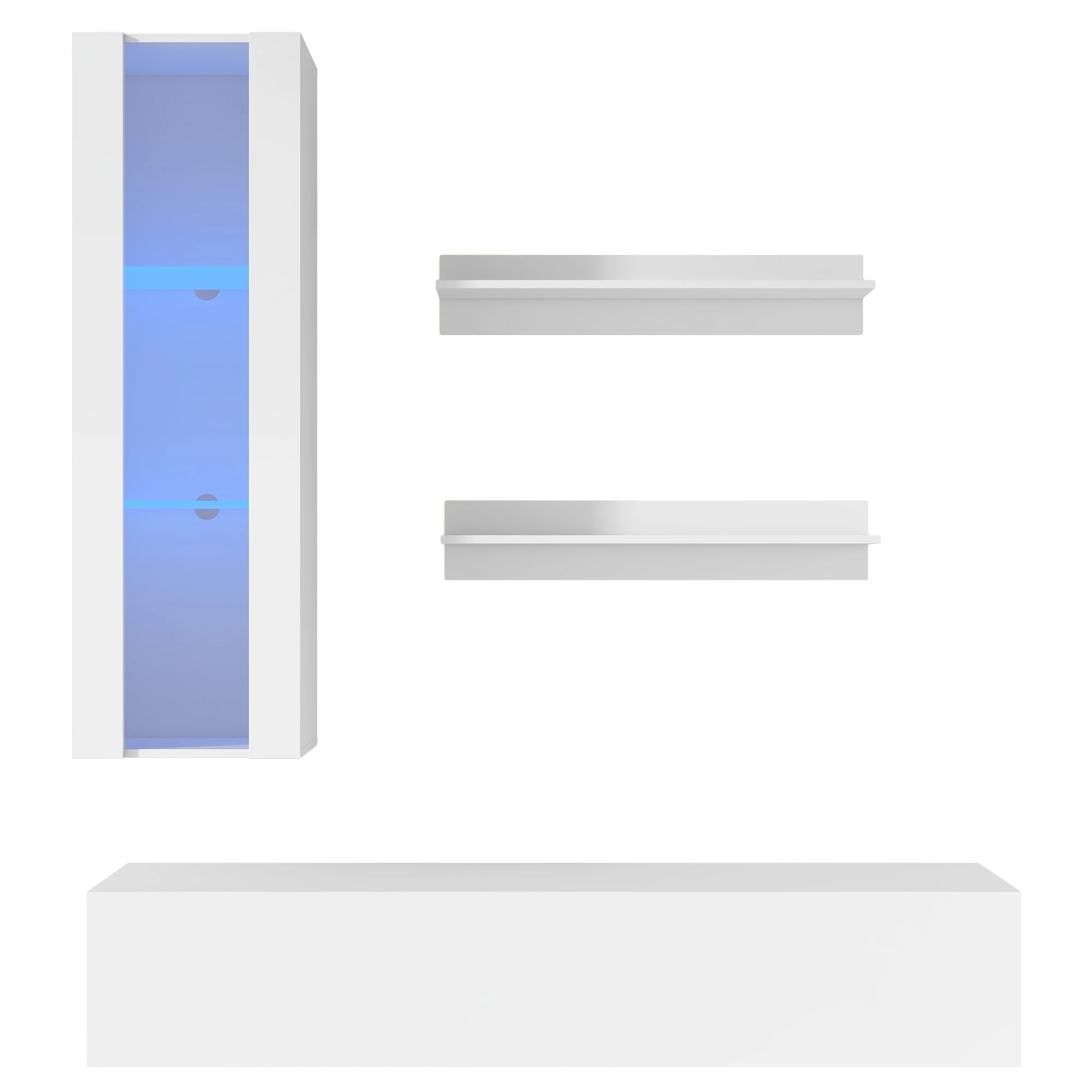 4Piece Wall Mount Floating TV Stand W/See-Through Media Storage Cabinet Modern High Gloss Entertainment Center Up to 70+ Inch TV