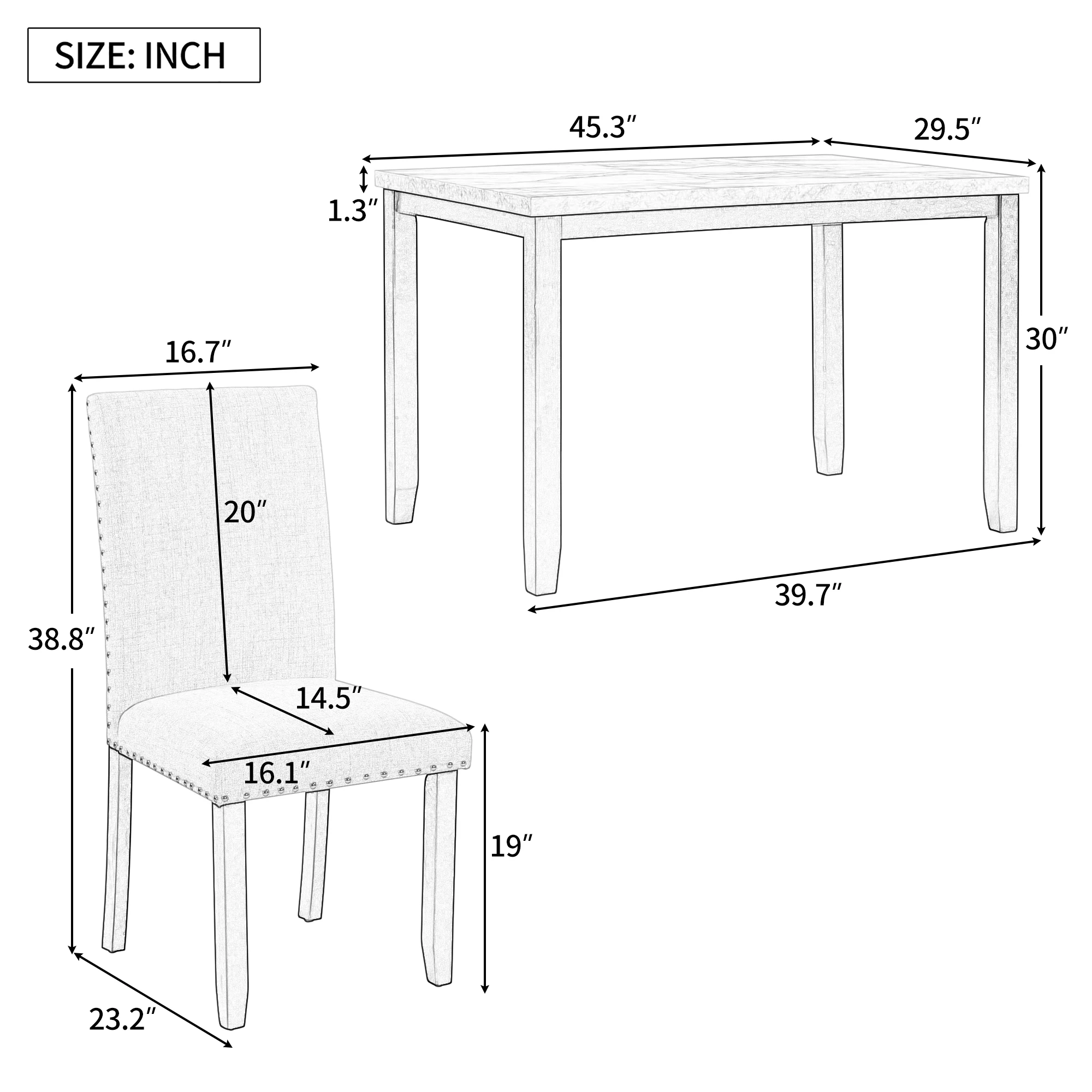 5-Piece Dining Table Set, Marble Veneer Top Kitchen Table Set with 4 Thicken Cushion Dining Chairs for Home Living Room