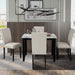 1. 5 Piece Kitchen Dining Table Set: This dining set includes a table and four matching chairs for the whole family to enjoy. The table and chair legs are fitted with rubber protective foot pads on that can protect your floor from scratches, while ensuring the table and chairs maintain their stability.
