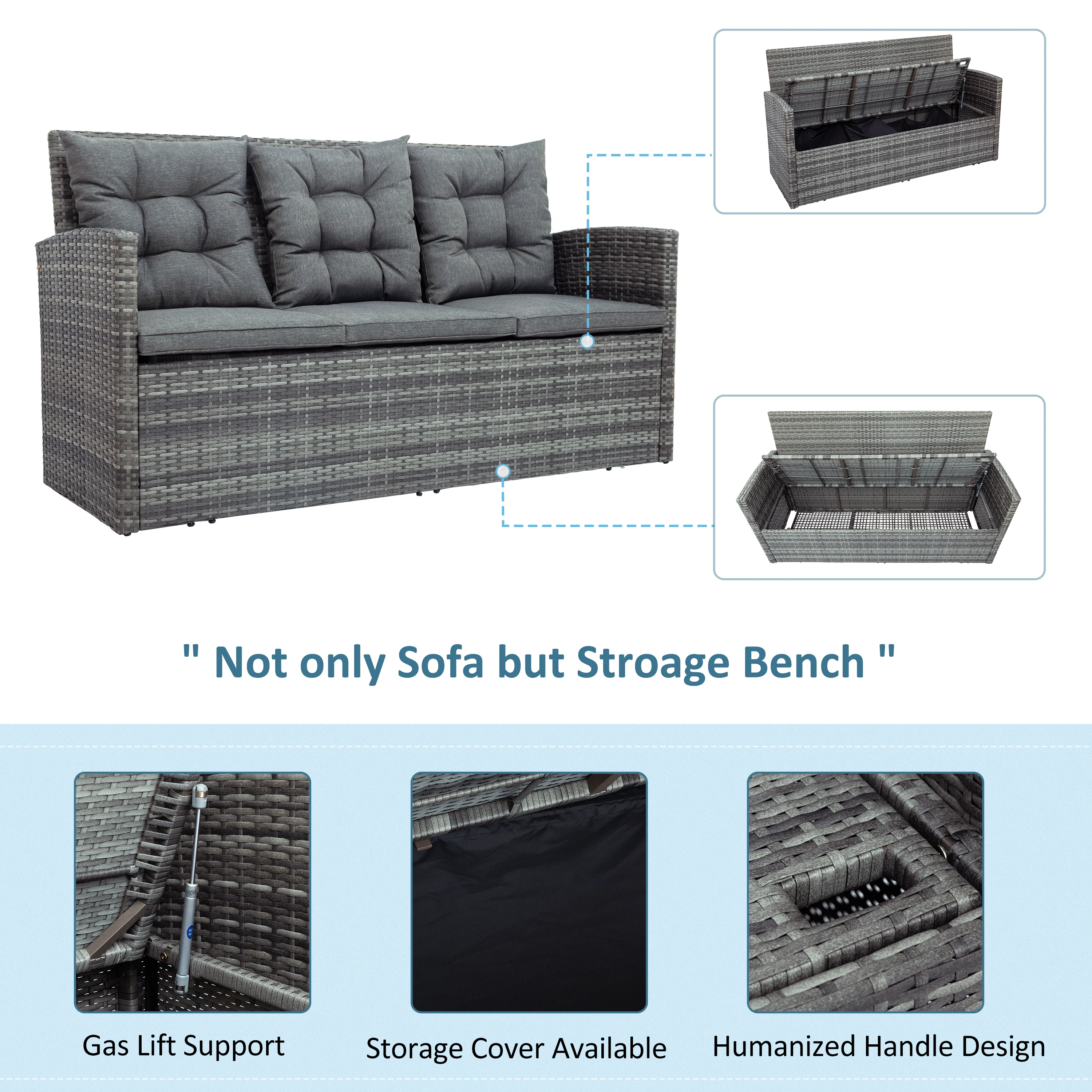 Wicker Patio Furniture with Storage Bench/3-seat Sofa