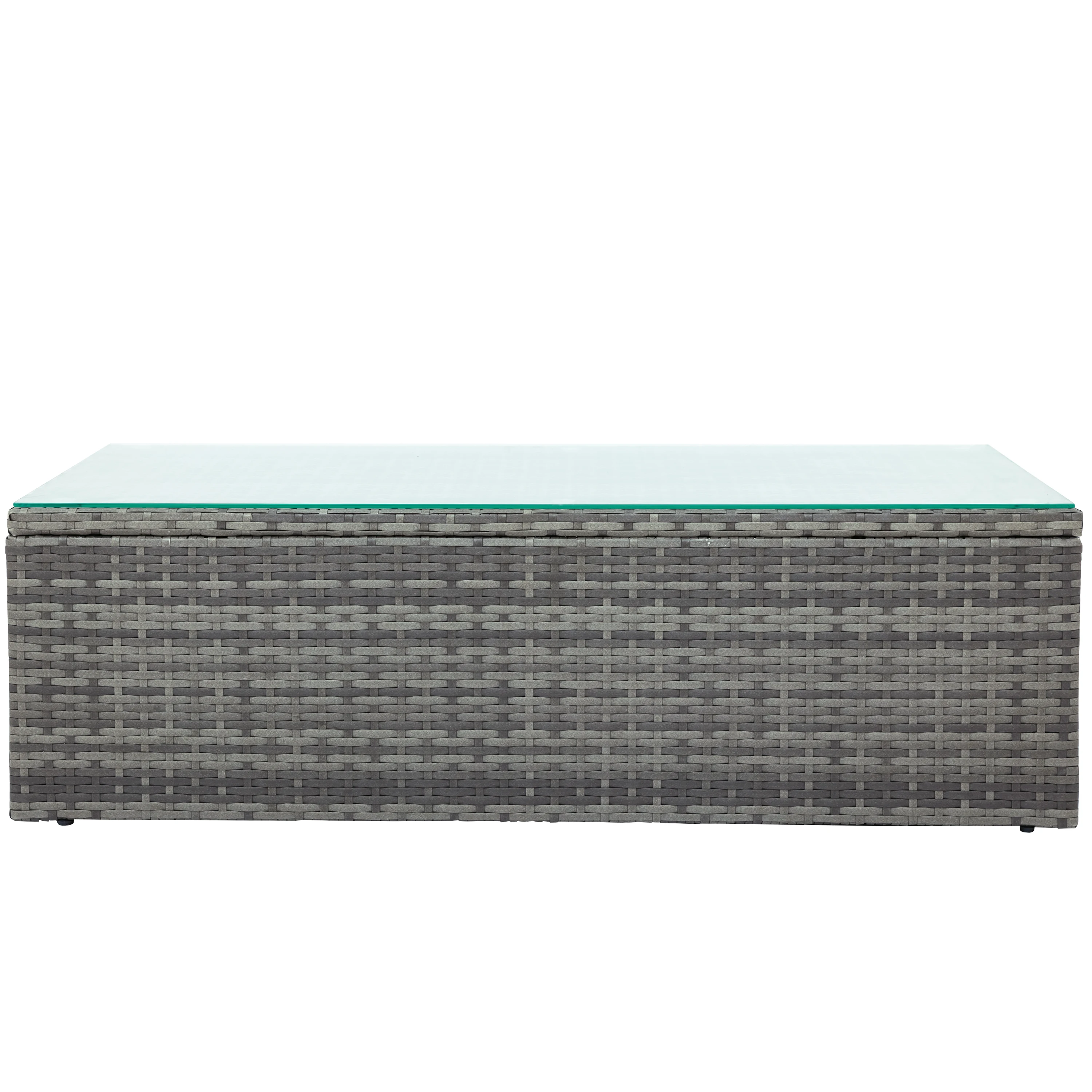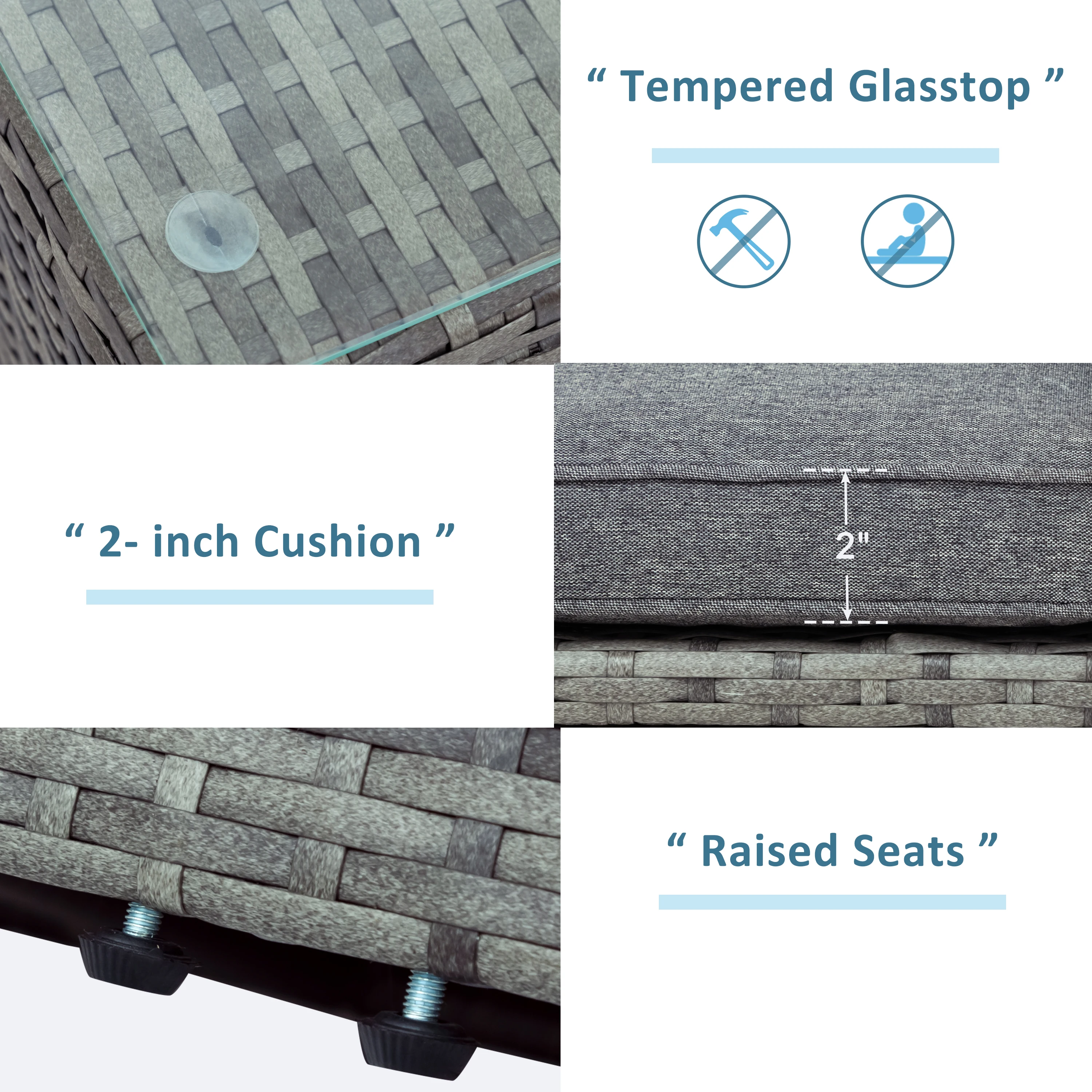 5-piece Outdoor UV-Resistant Patio Sofa Set with Storage Bench All Weather PE Wicker Furniture Coversation Set with Glass Table