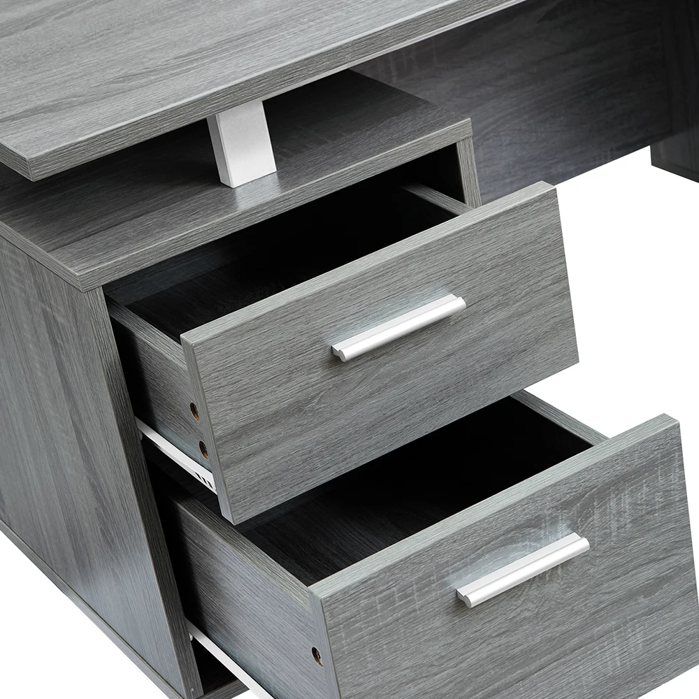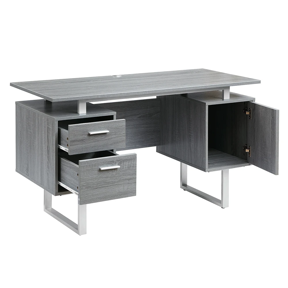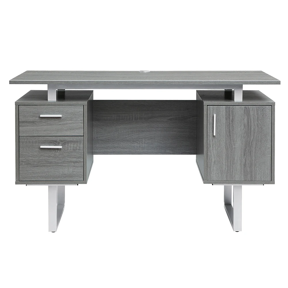 Techni Mobili Cubism is sleek and contemporary, this desk is the perfect combination of function, durability and design in a modern form. With clean lines, a floating top work station and sleek track metal legs, this desk will add pizzazz to any home office. Featuring two storage drawers and a file cabinet to help keep you organized with a large desktop surface to provide plenty of room for all your hardware and working needs. Color: Grey