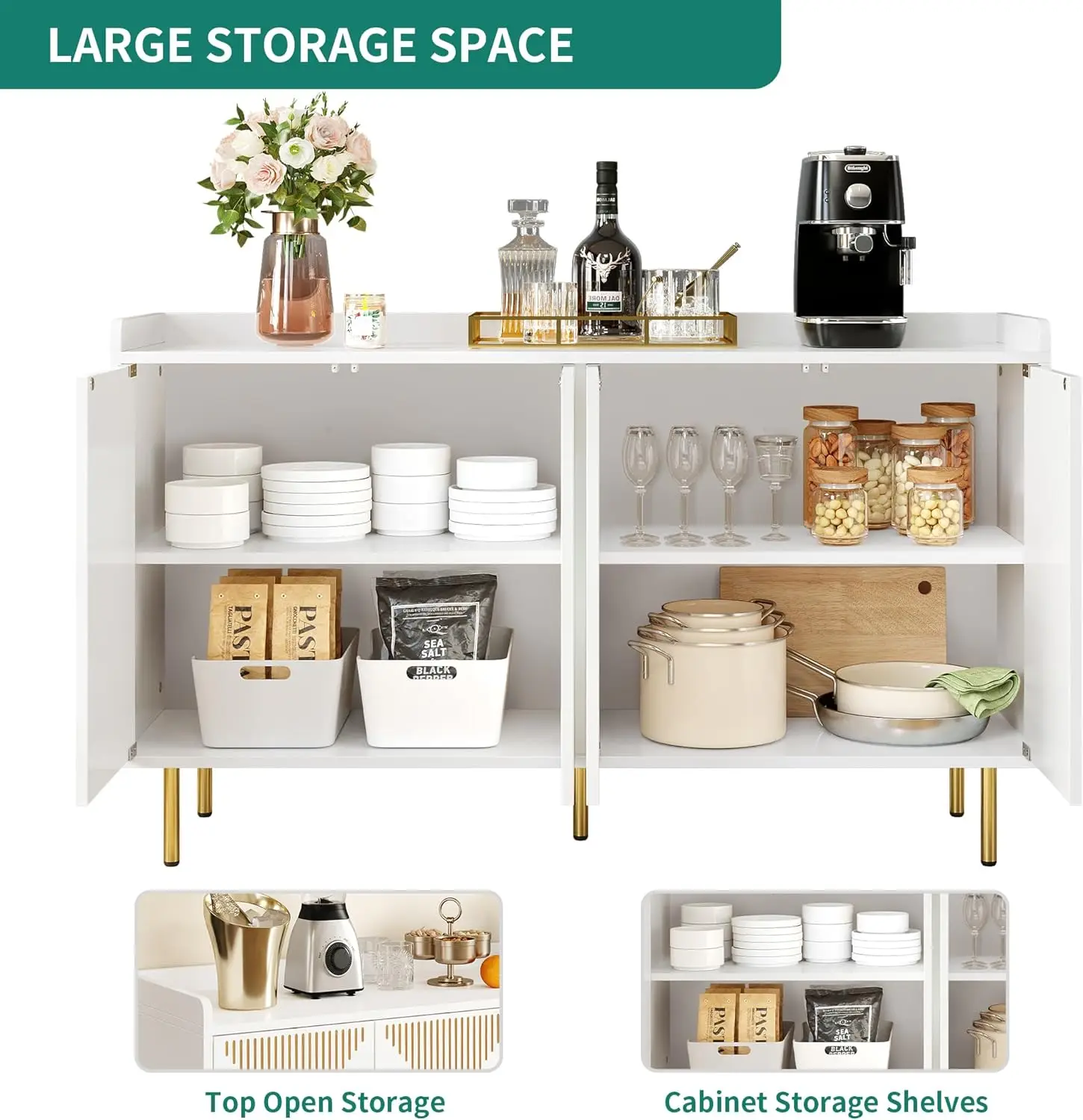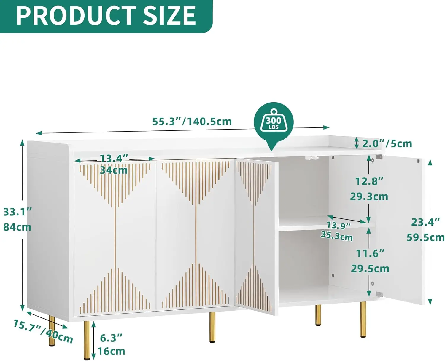 55'' Modern Sideboard Buffet Kitchen Storage Cabinet w/ Carved Design Doors, Coffee Bar Hutch Cabinet 300 lbs Capacity,White